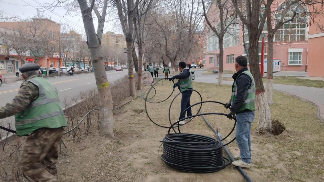 为切实保障城区主街道绿化苗木春季返青生长用水需求,有效解决老旧供水管网老化破损、跑冒滴漏、供水效率偏低等问题,近期,霍城县园林绿化管理站统筹谋划、精准施策,全面启动城区主街道绿化供水管网更换升级工程,以硬件提质赋能园林绿化精细化管护。