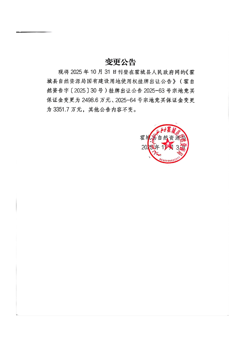 霍城县自然资源局2025-63、2025-64号宗地变更公告