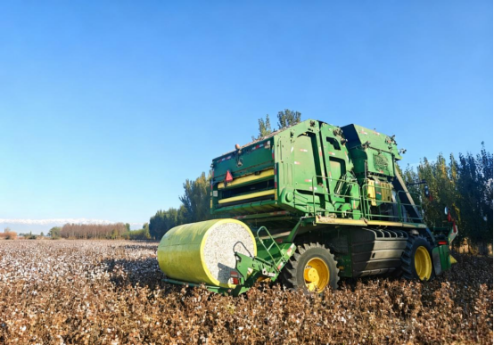 近年来,三道河乡坚持以科技为先导,大力提升农业现代化水平,以高标准农田建设为契机,推进土地流转规模经营,广泛推广应用膜下滴灌、水肥一体化、生物防治病虫害等先进实用技术,棉花种植实现从播种、田管到采收的全流程机械化。在三道河乡塔尔吉村的棉田地里,伴随着机械的轰鸣声,一朵朵洁白的棉花被卷入机身内部,经脱籽、压缩、打包等工序后,一个个圆滚滚的、约2吨重的棉包从机身后部滚落,整齐排列在田垄间,构成了一幅科技赋能的喜人丰收画卷,今年每亩产量预计能达到500公斤左右。