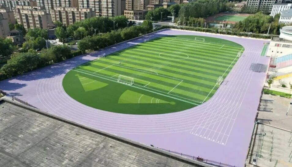 自项目启动以来,无锡市(江阴市)援霍工作组始终将其作为“小而美”民生实事工程重点推进,多次组织协调设计团队、施工单位与学校召开三方会议,确保改造既贴合教学需求,又兼顾边疆实际。该项目不仅完成了3栋教学楼、2栋宿舍楼以及体育馆、综合楼、食堂的外观立面更新升级,还更新改造了19000平方米的田径运动场地和4300平方米的篮球、排球、乒乓球综合运动场地,设计中融入本地特色的薰衣草紫色,让设计更“接地气”。