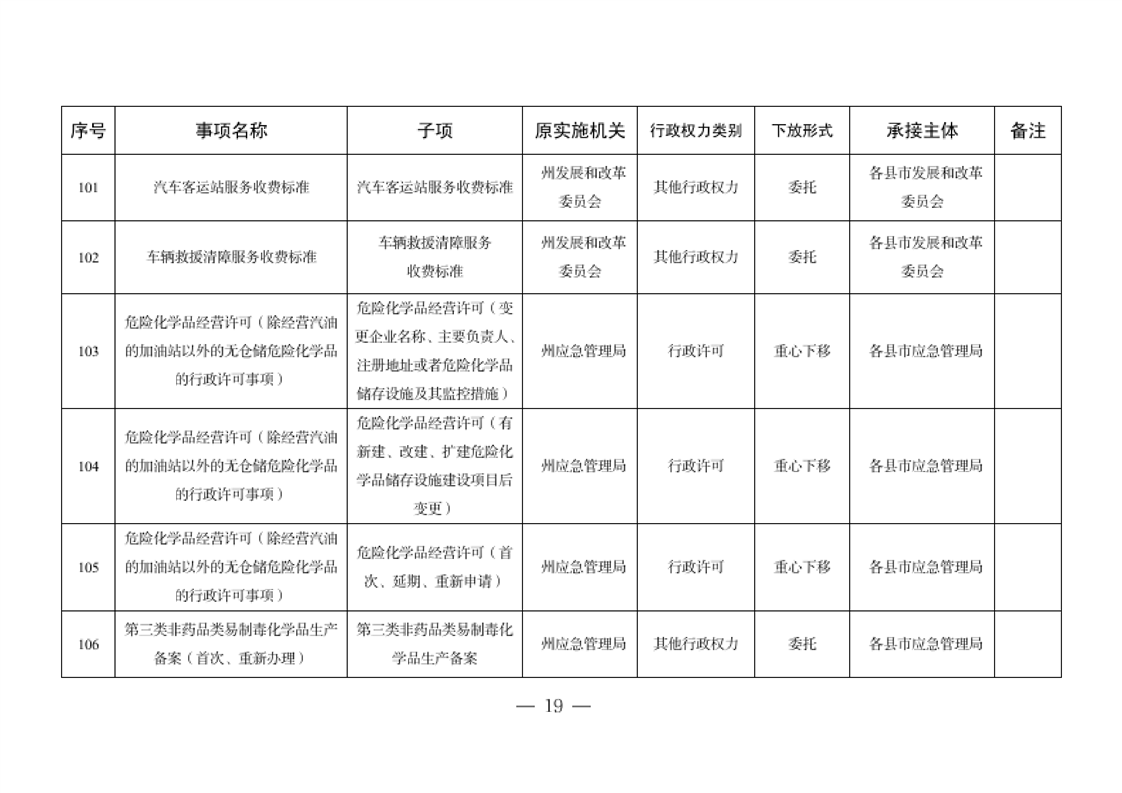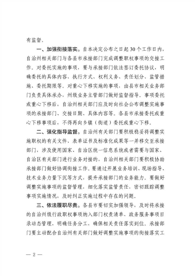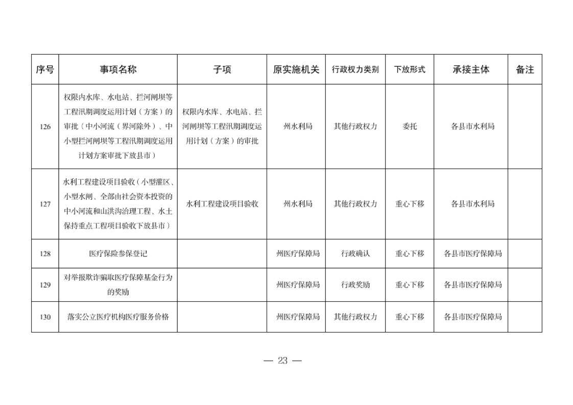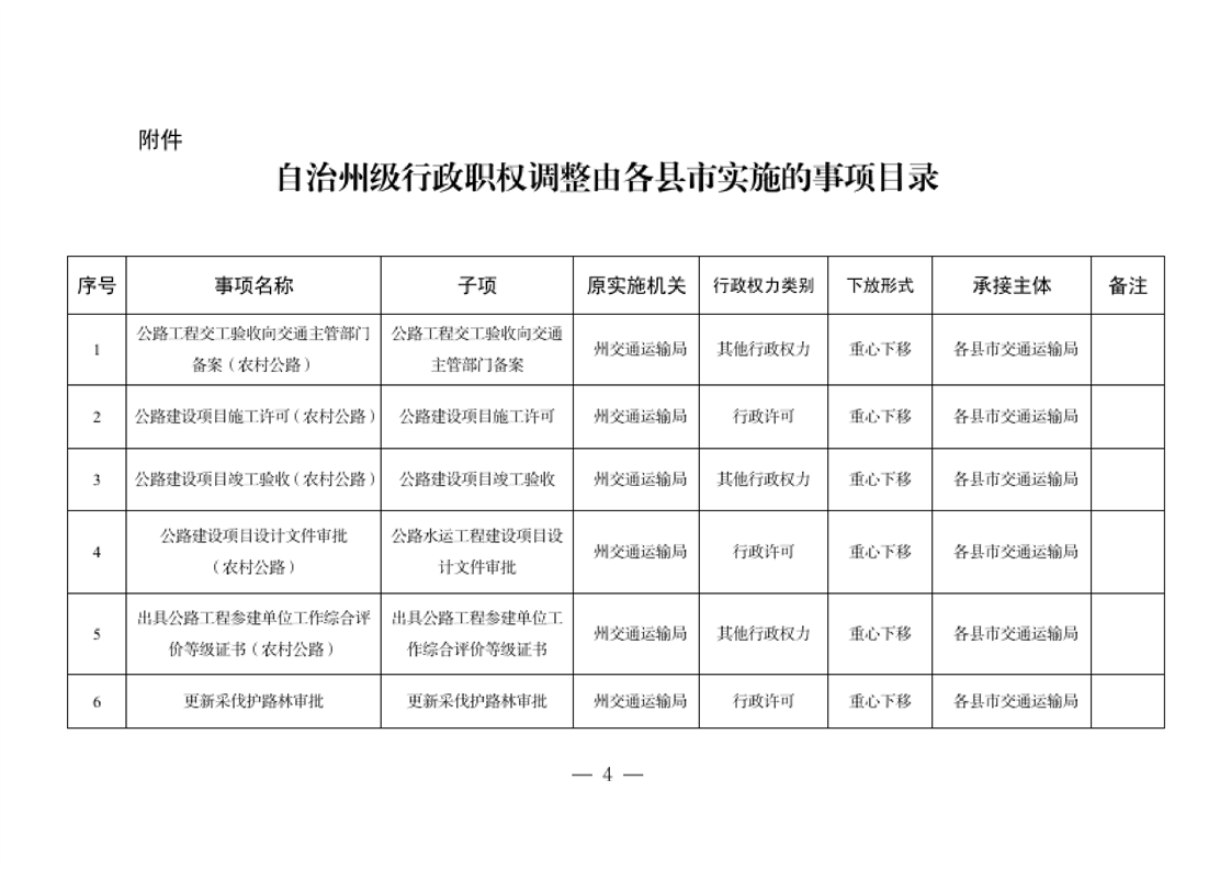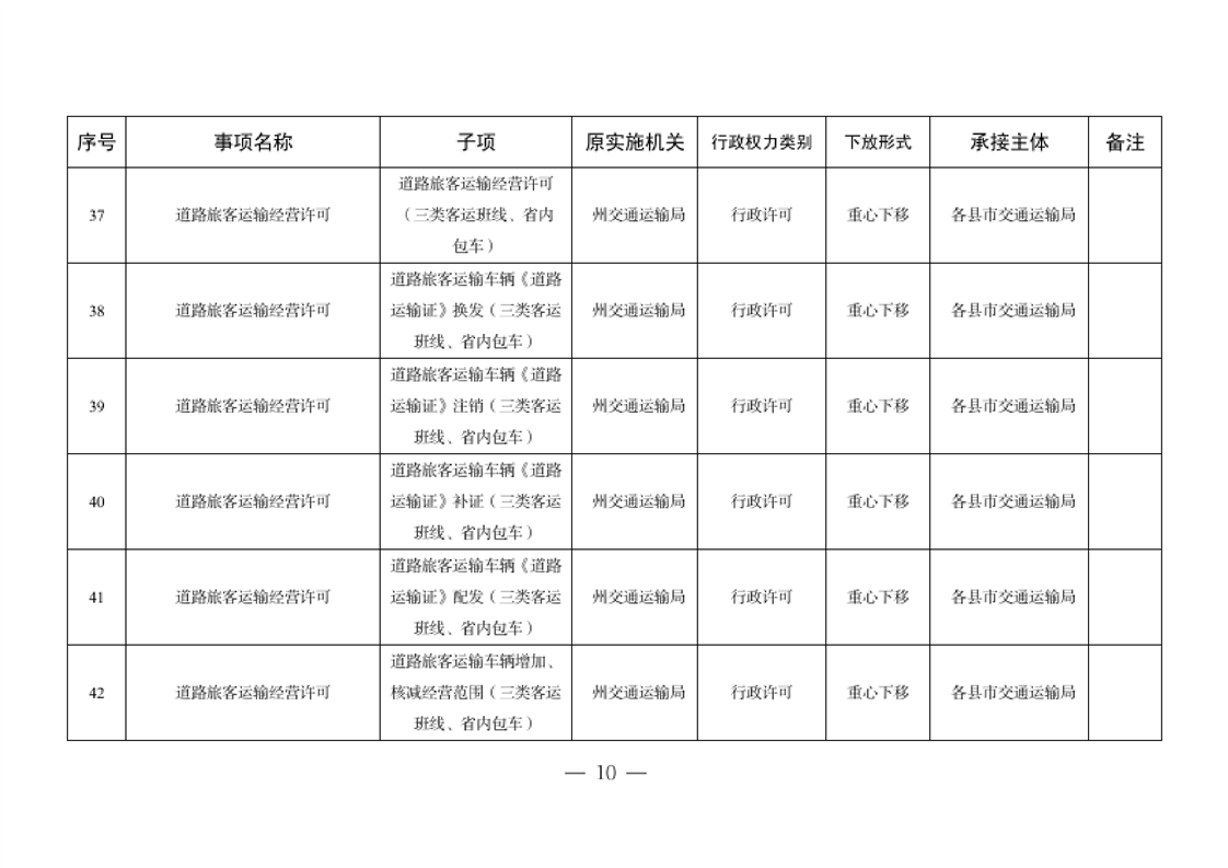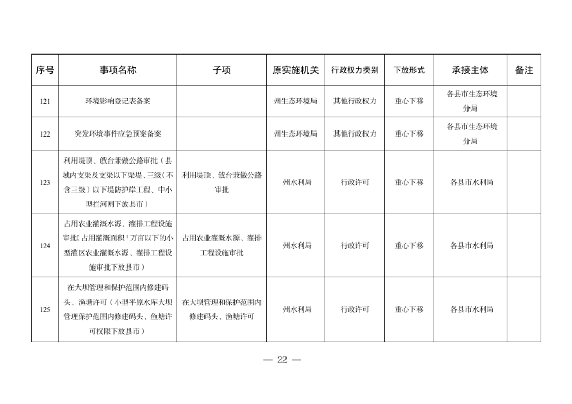 关于将一批自治州级行政职权事项调整由县市实施的决定