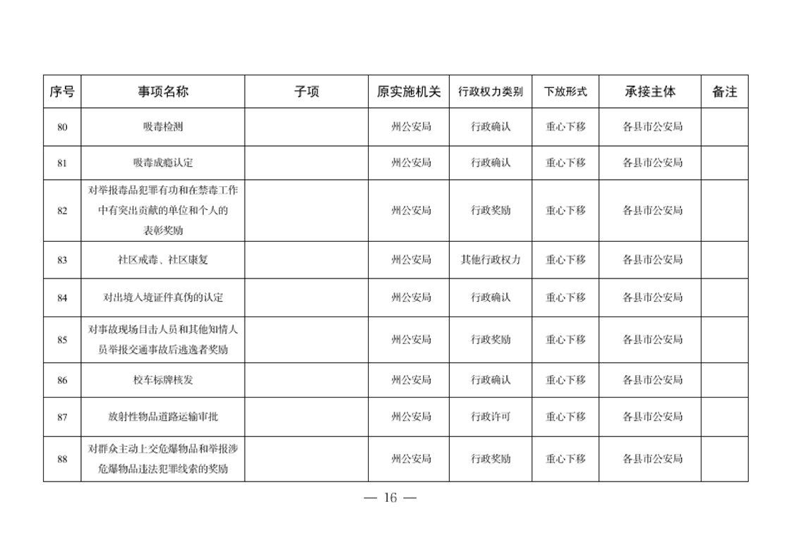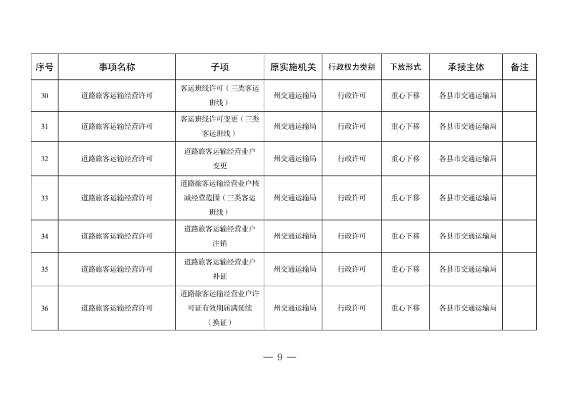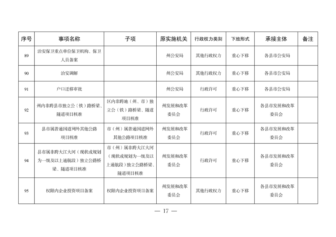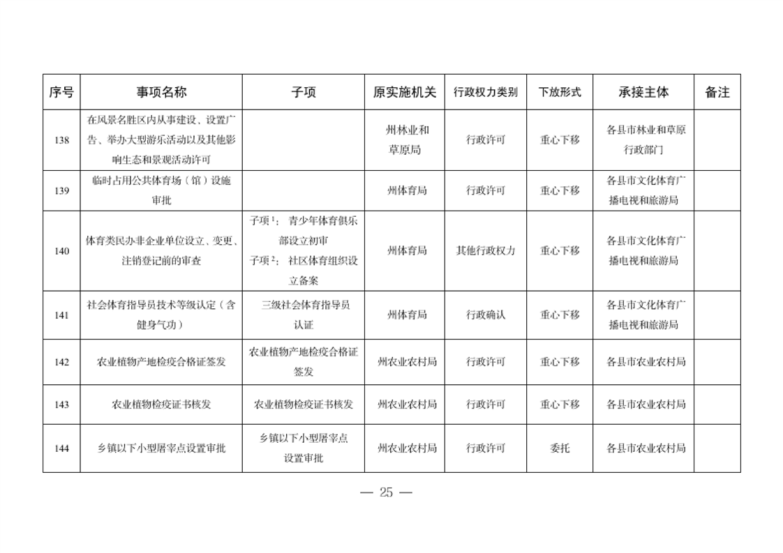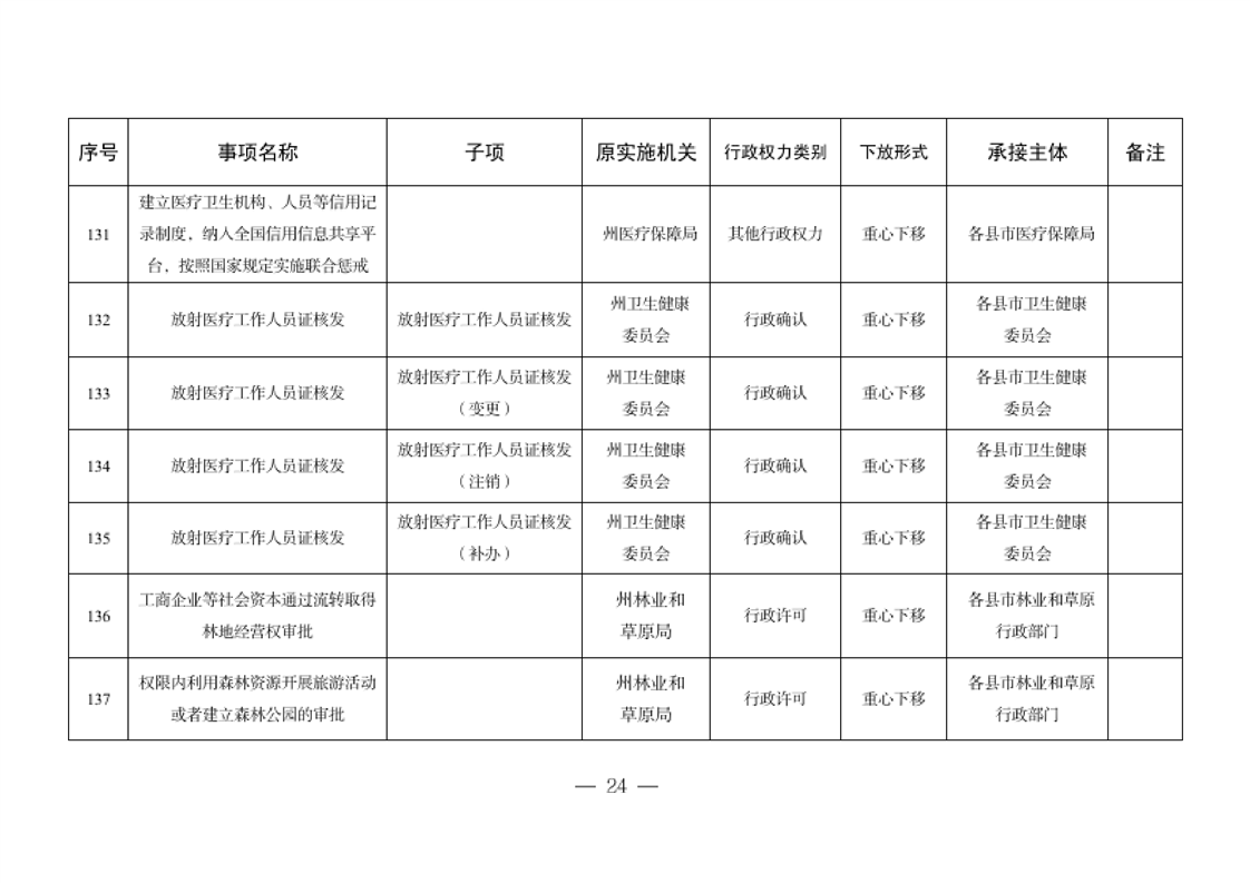 关于将一批自治州级行政职权事项调整由县市实施的决定