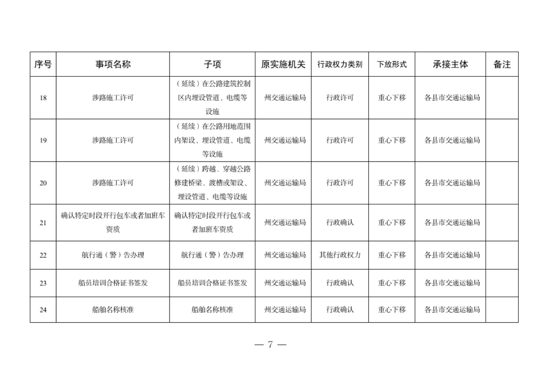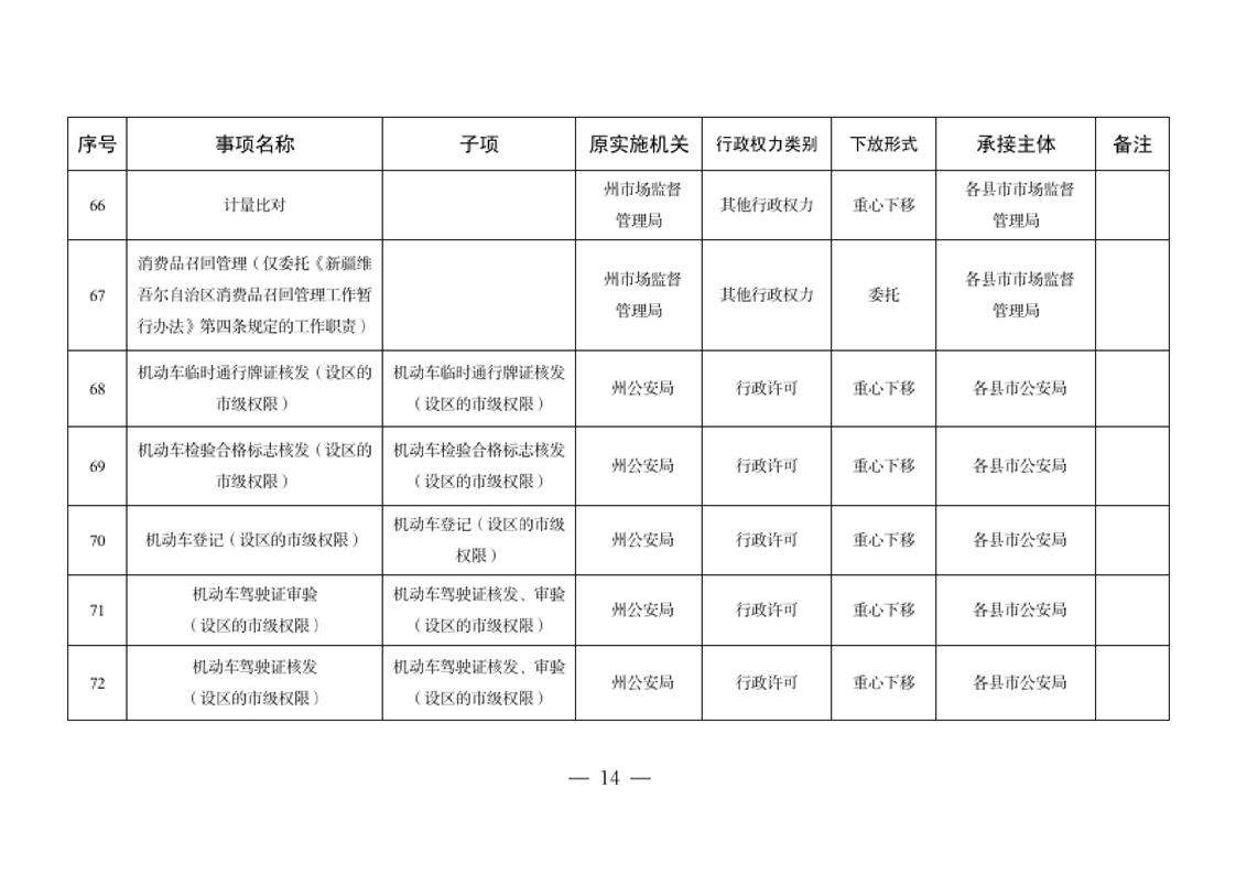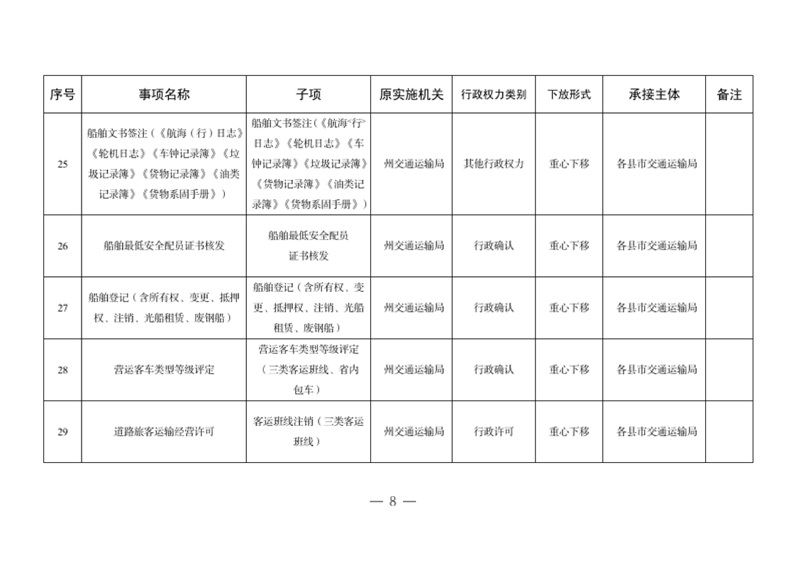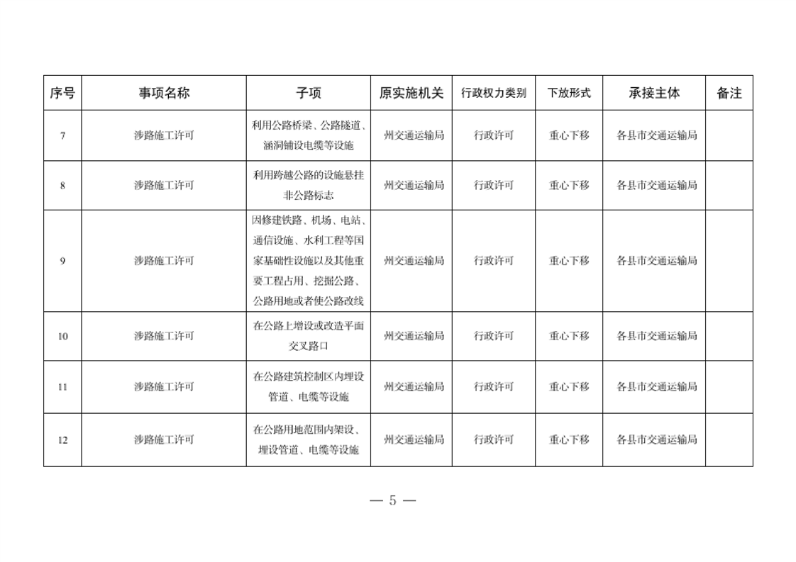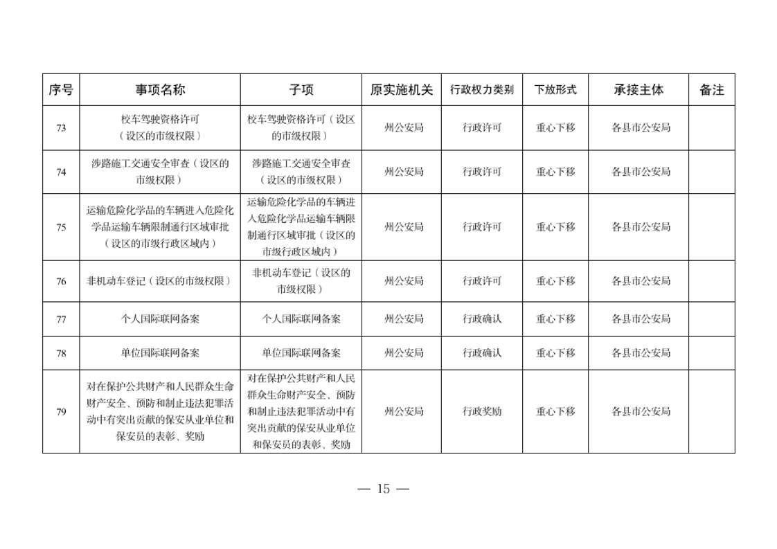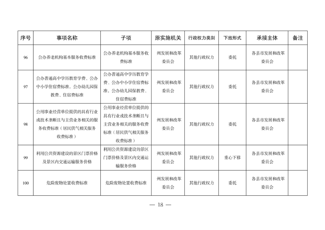 关于将一批自治州级行政职权事项调整由县市实施的决定
