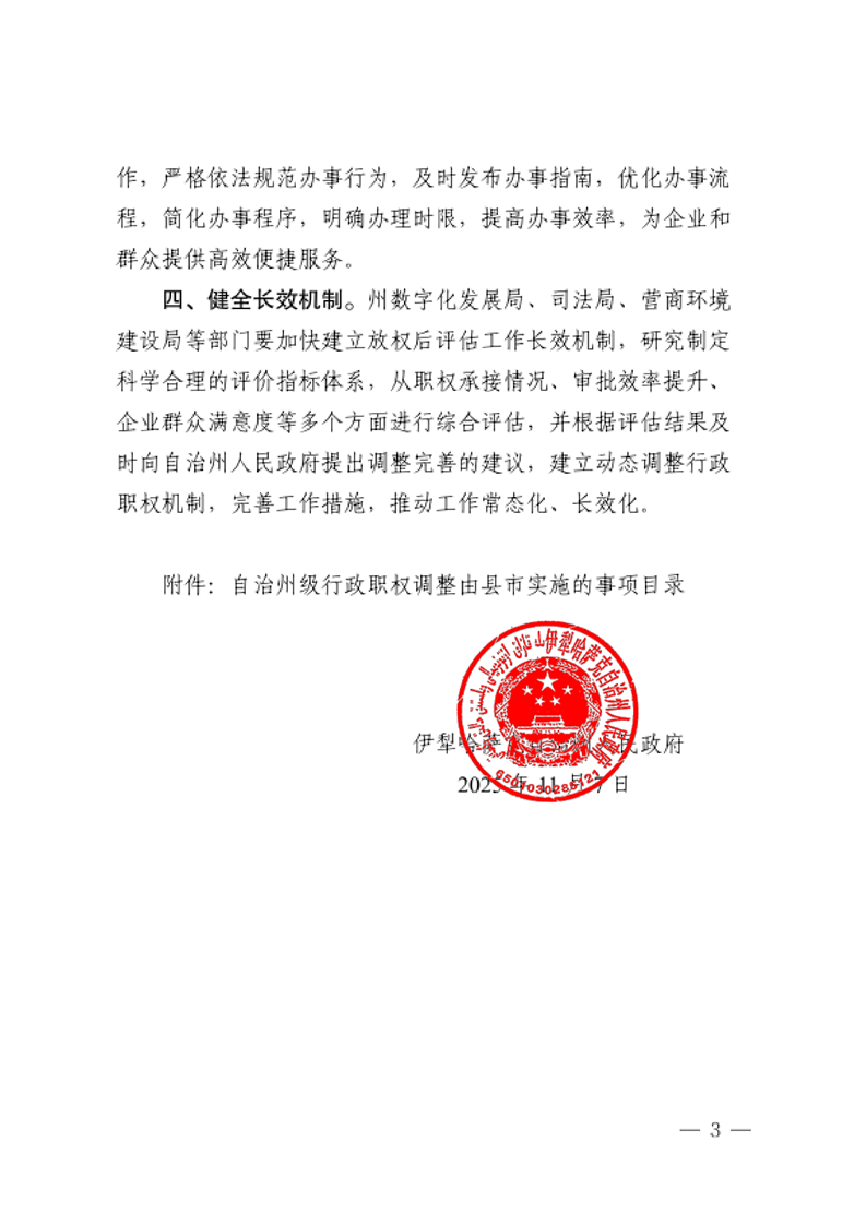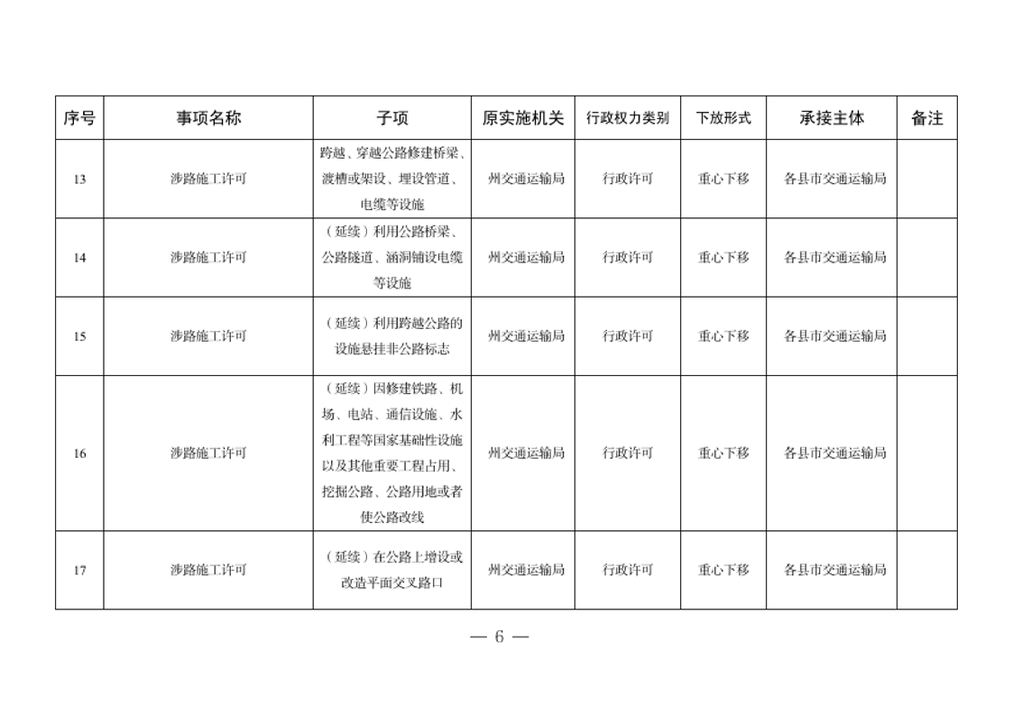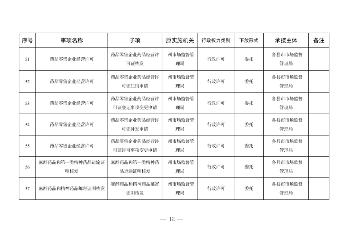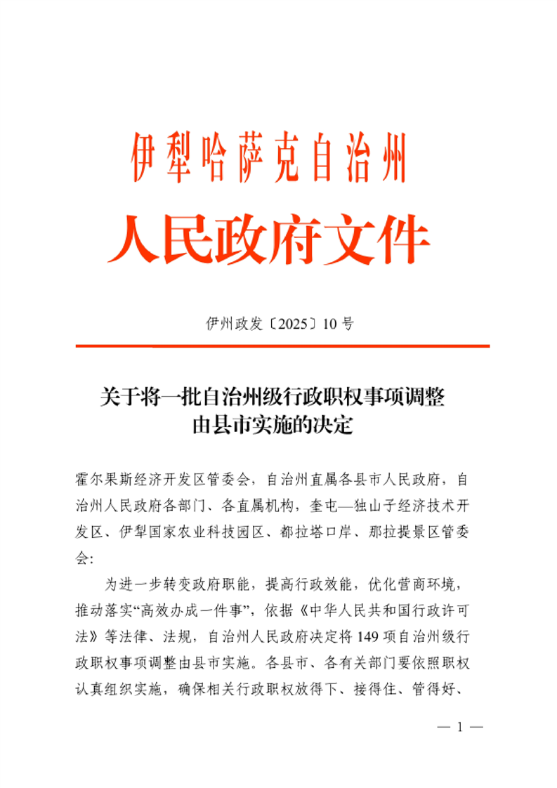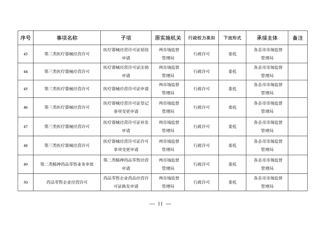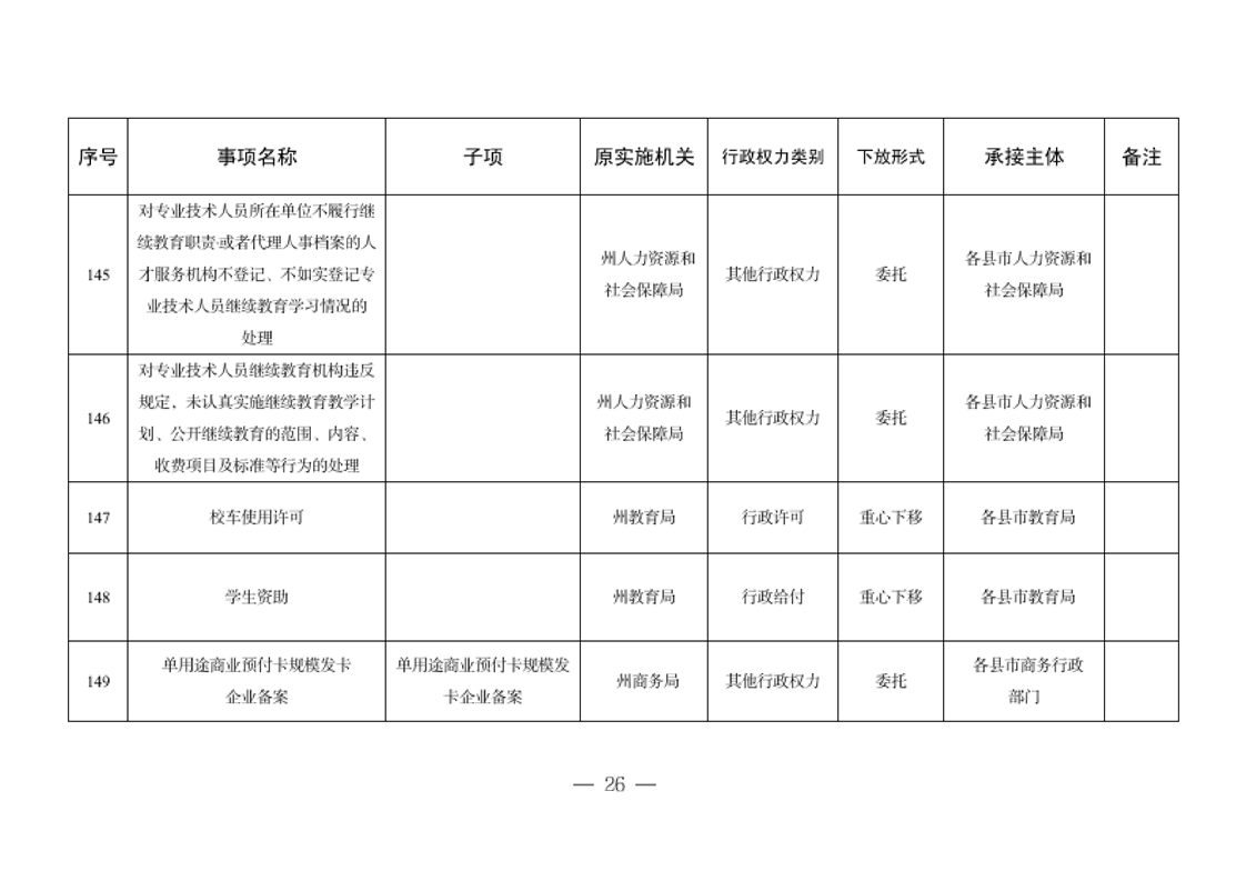关于将一批自治州级行政职权事项调整由县市实施的决定