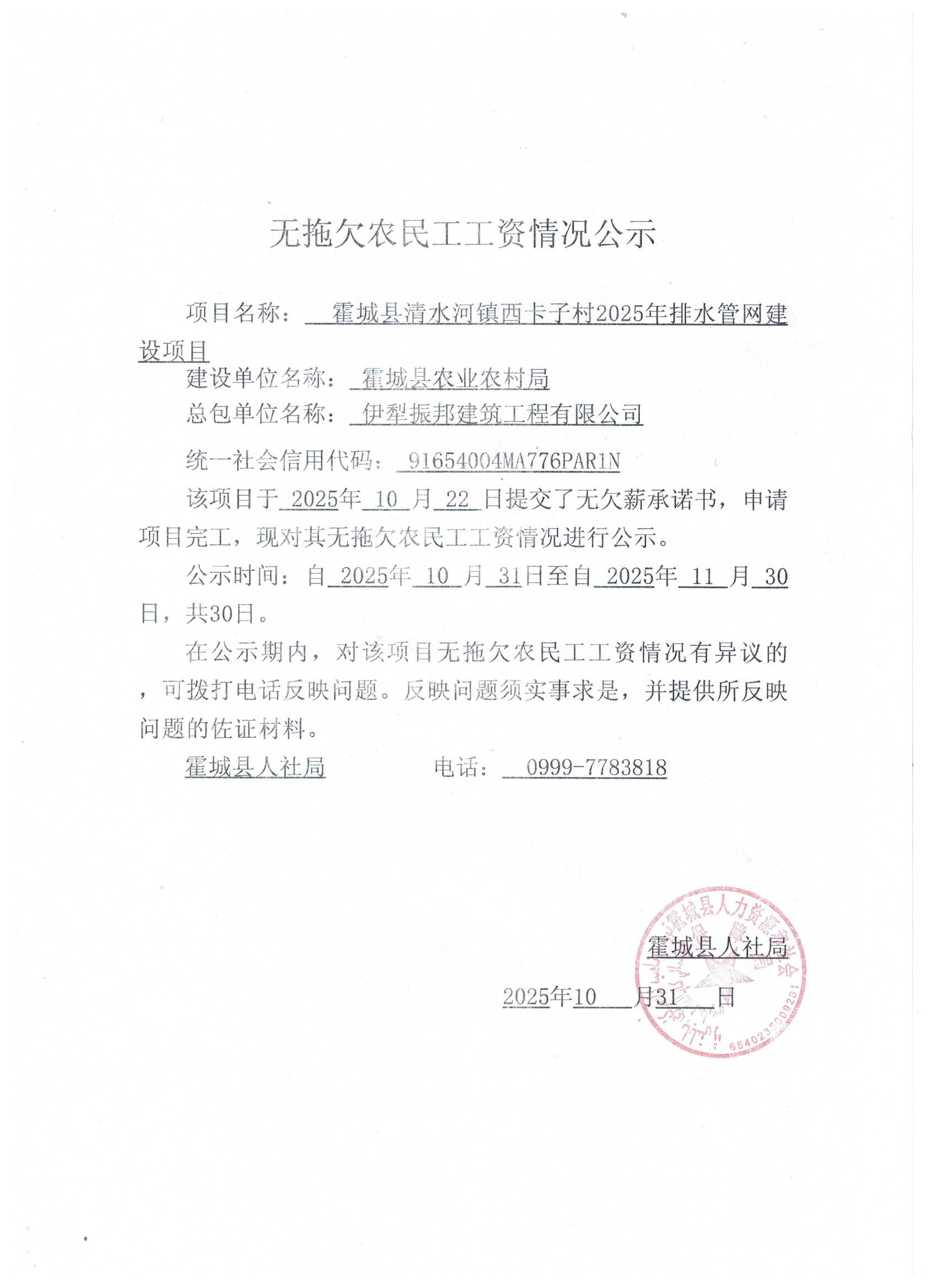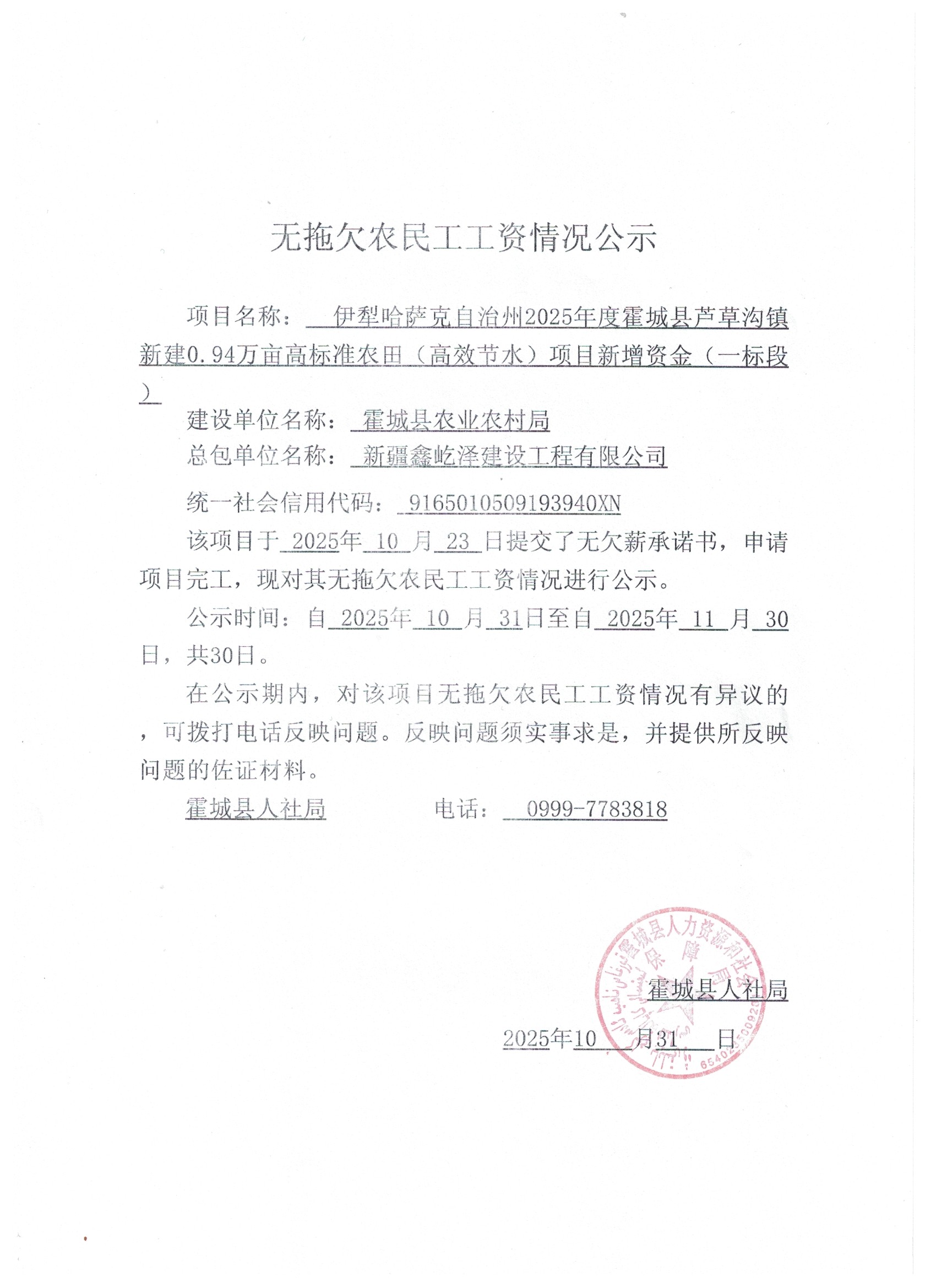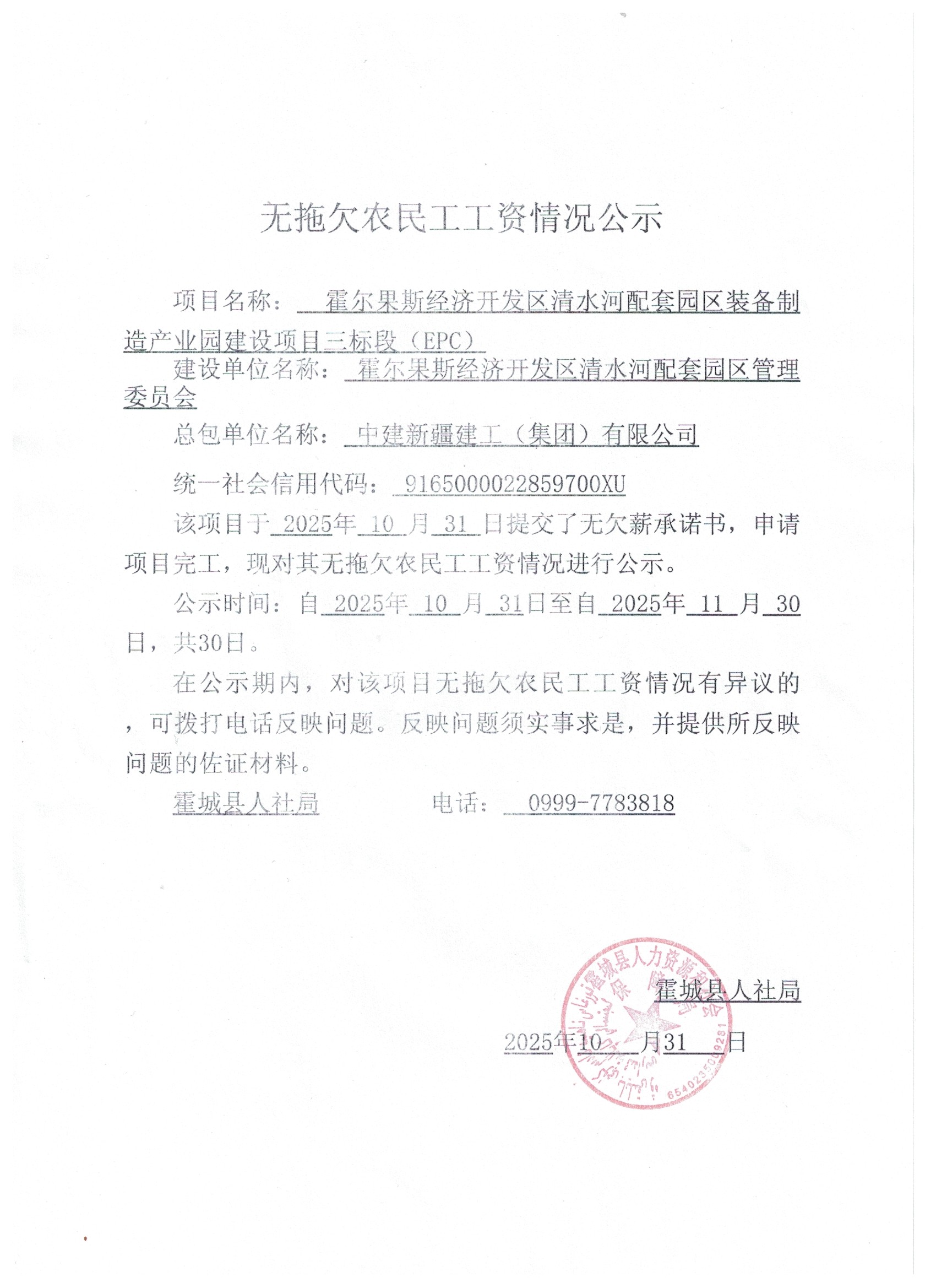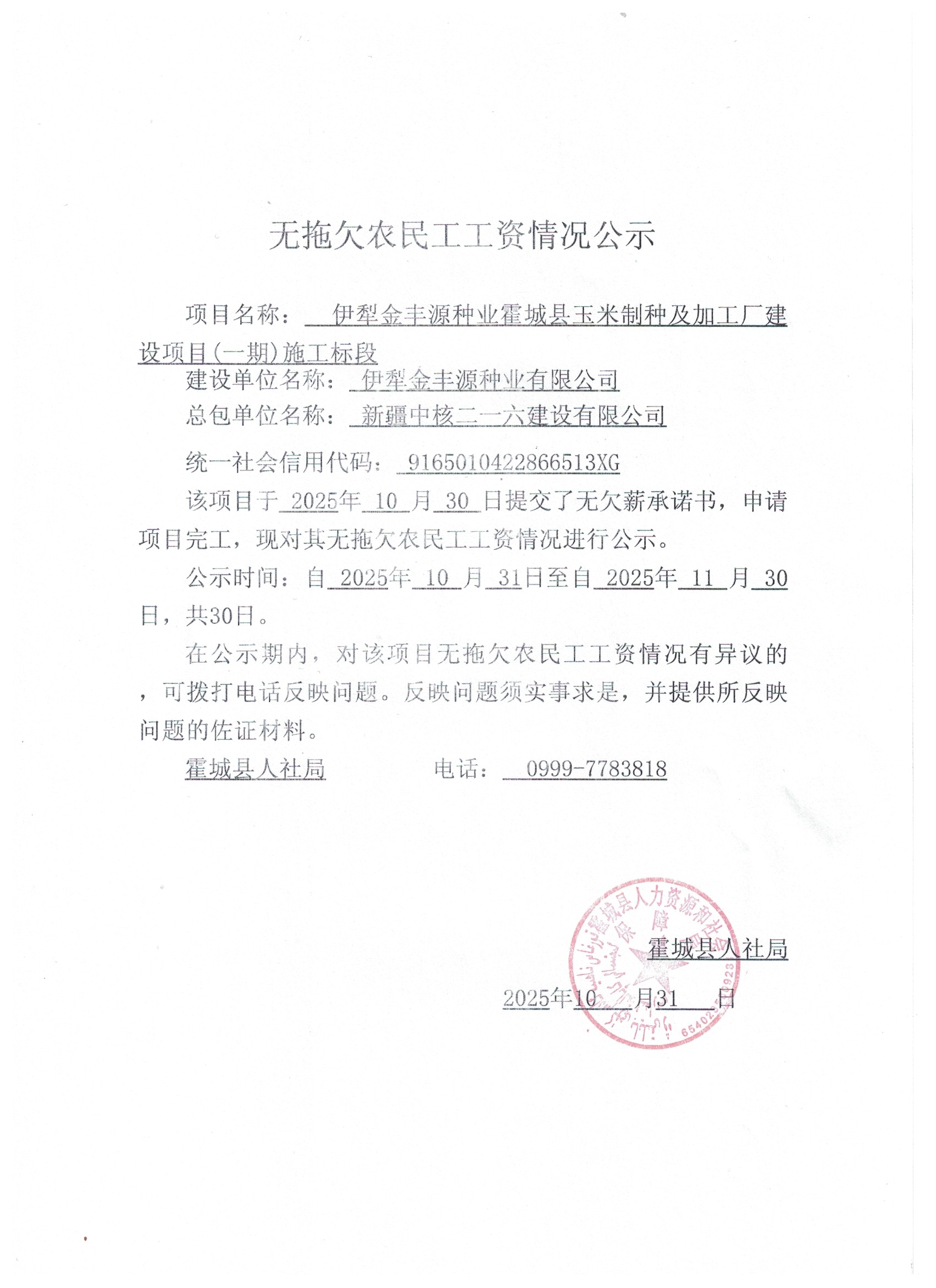 关于无拖欠农民工工资的公示(四)