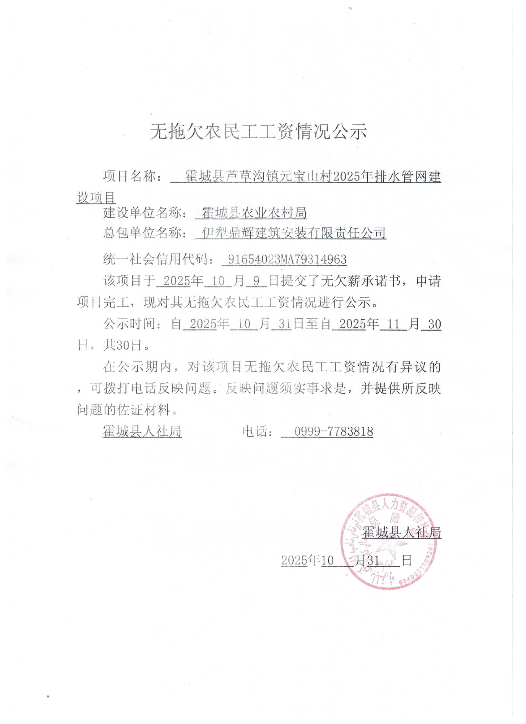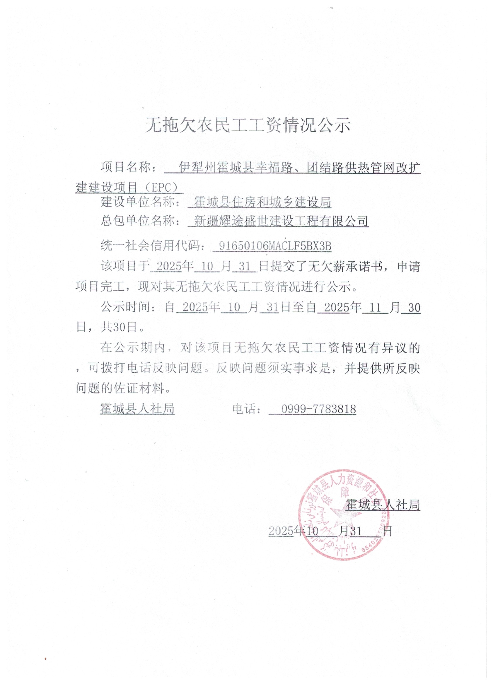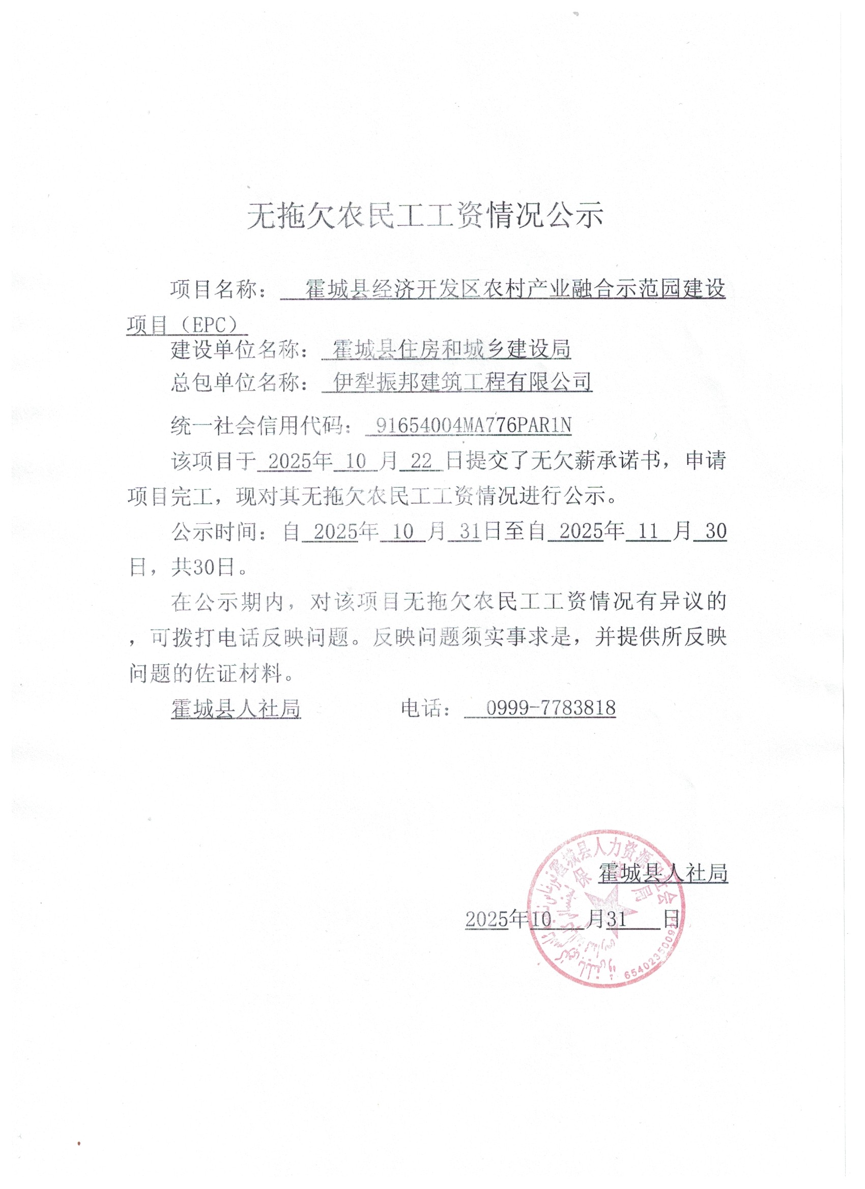 关于无拖欠农民工工资的公示(四)