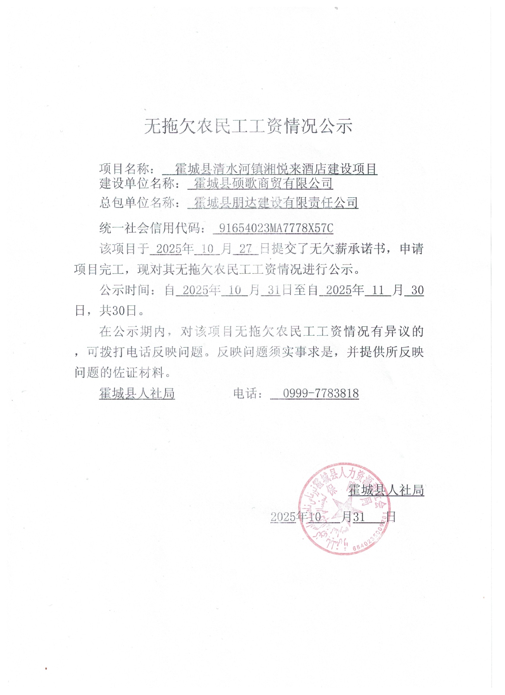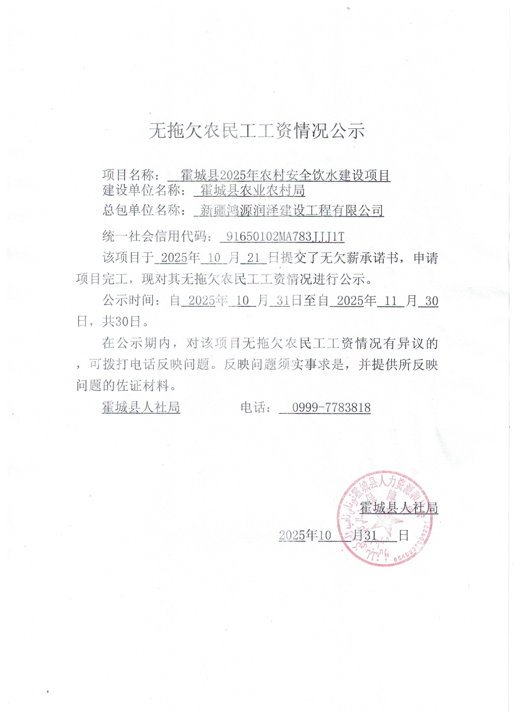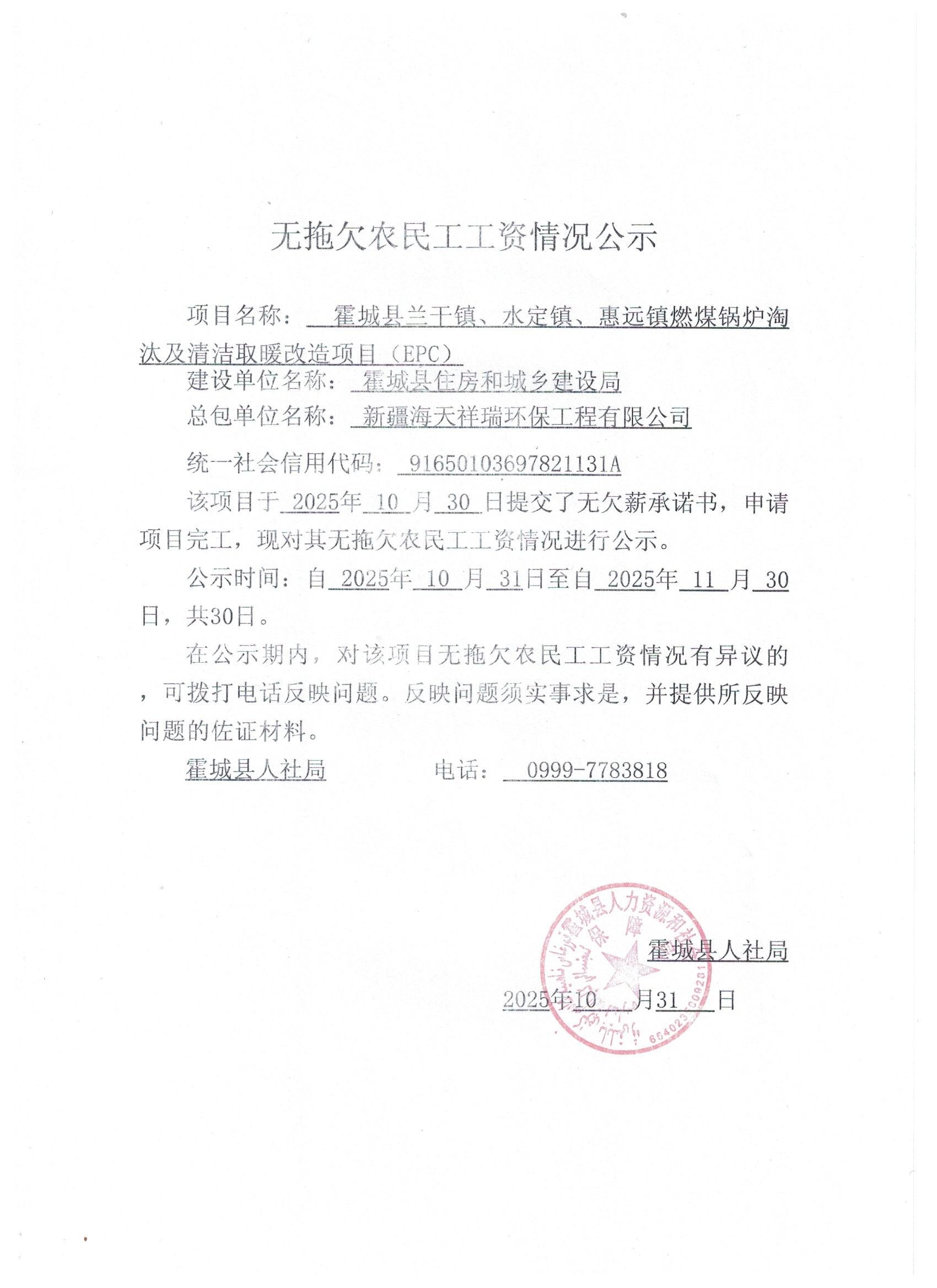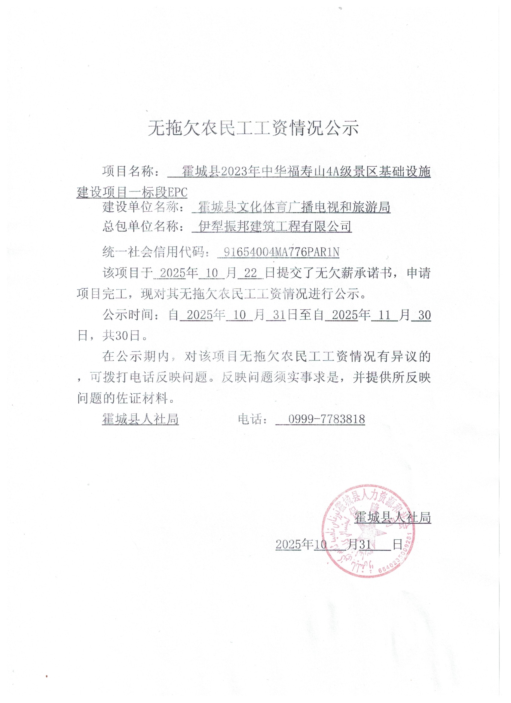 关于无拖欠农民工工资的公示(四)