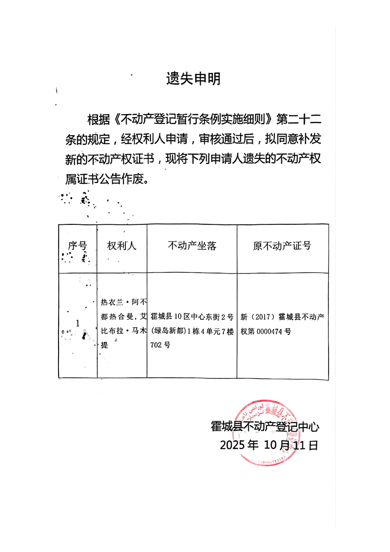 热衣兰·阿不都热合曼,艾比布拉·马木提遗失声明