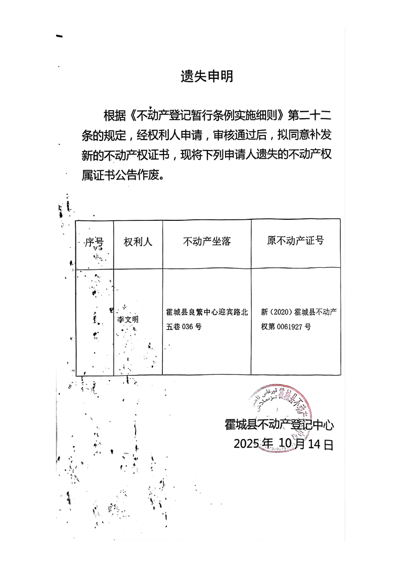李文明遗失声明