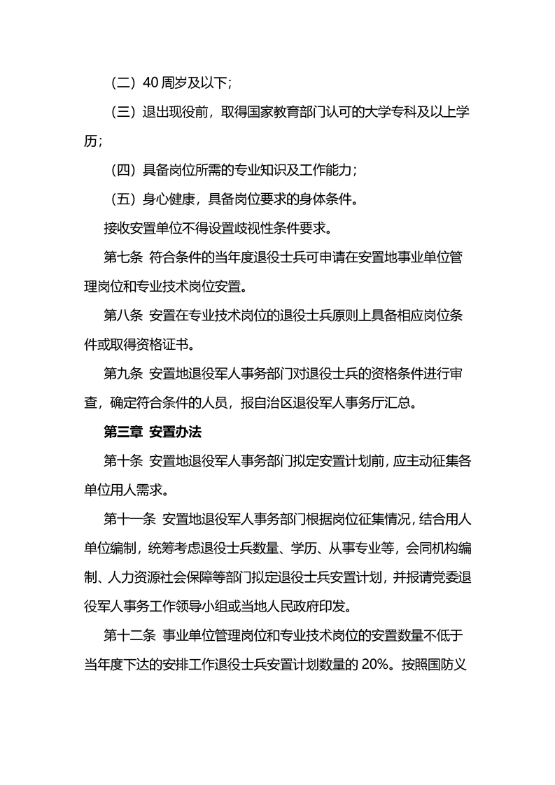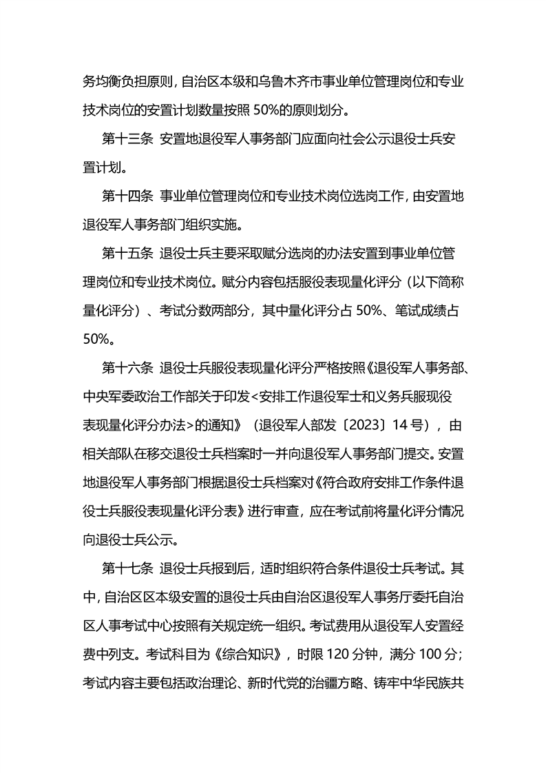 新疆维吾尔自治区安排工作退役士兵在事业单位管理岗位和专业技术岗位安置暂行办法