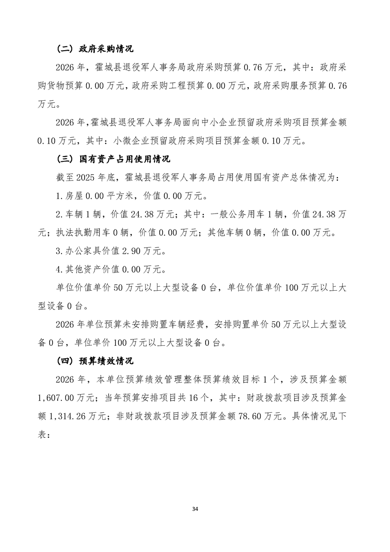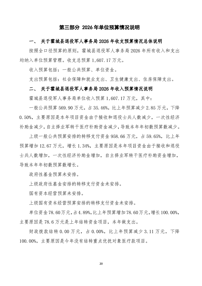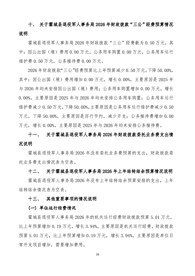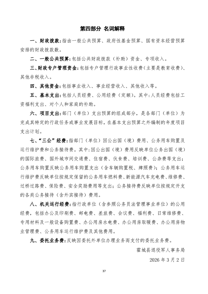 2026年霍城县退役军人事务局单位预算公开