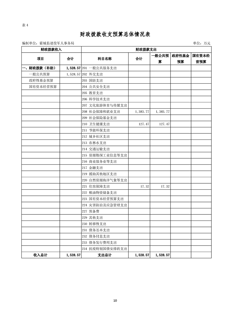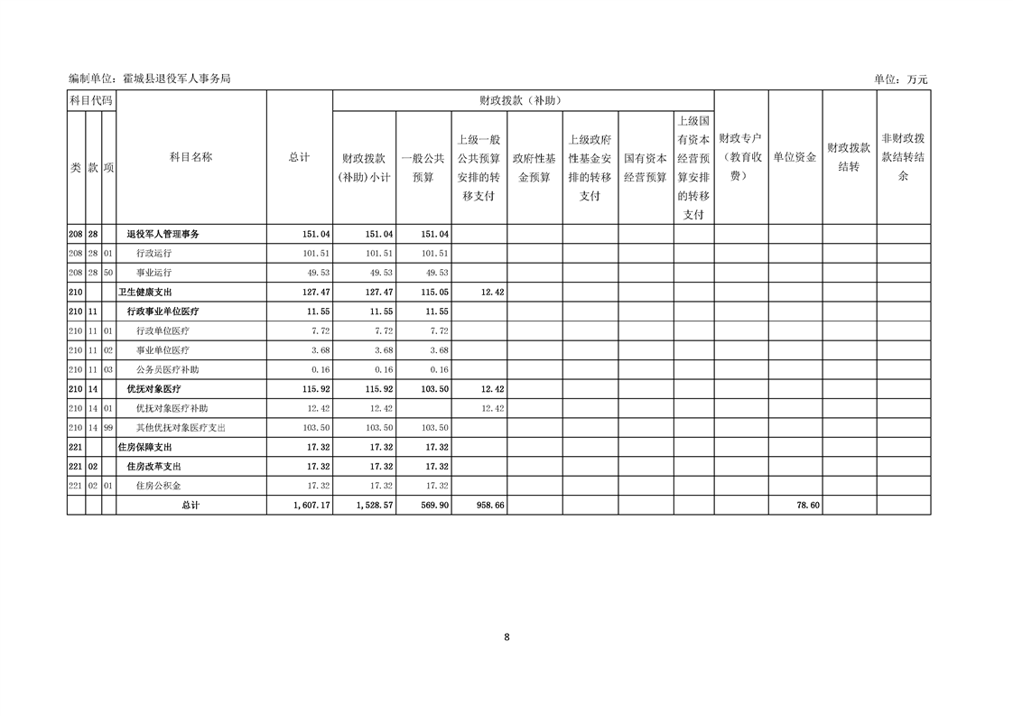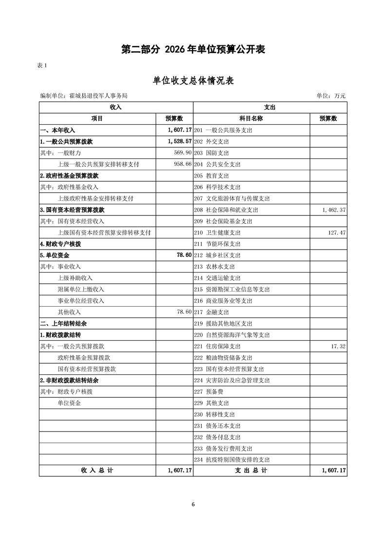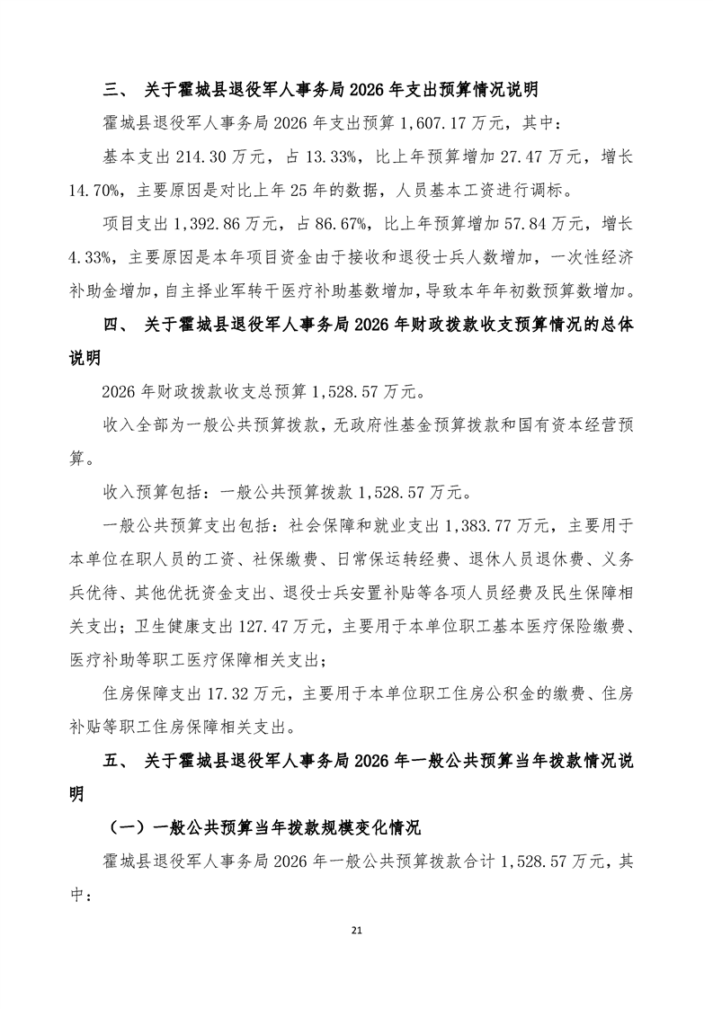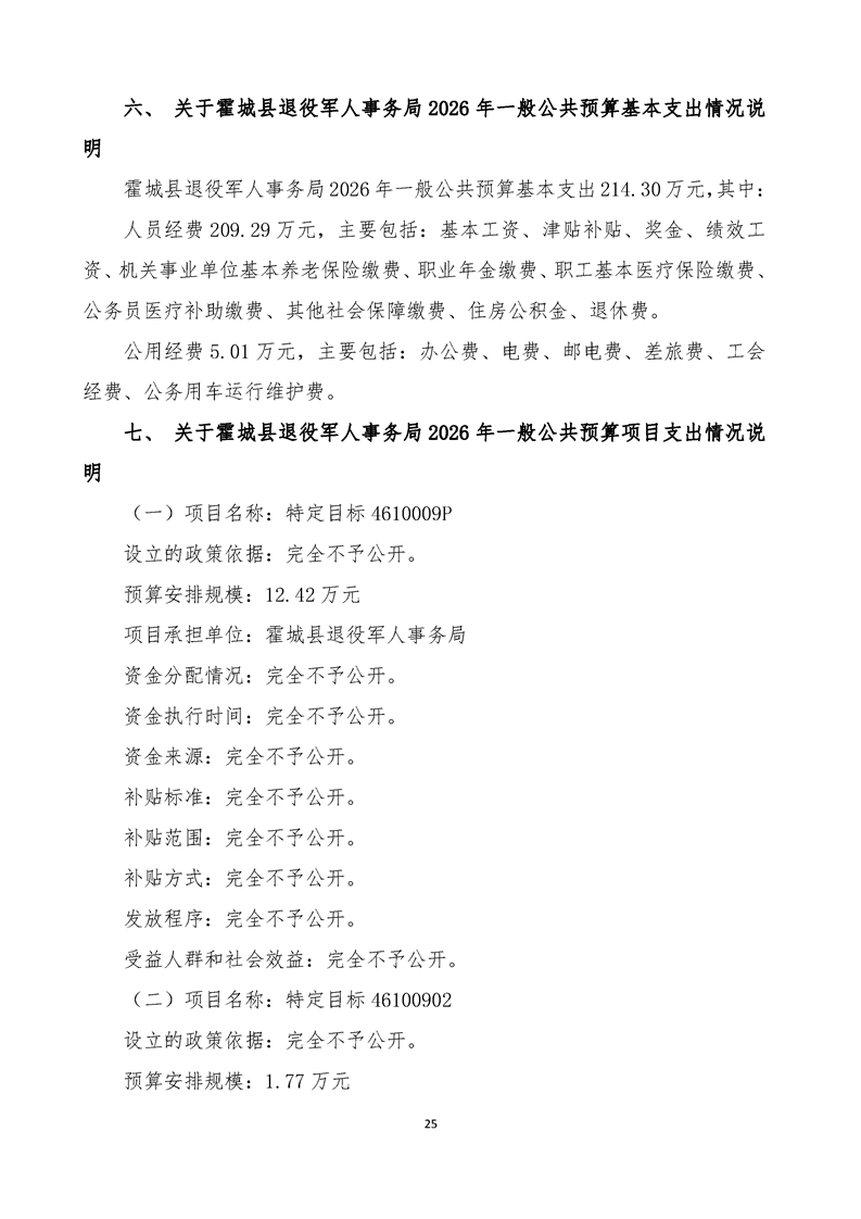 2026年霍城县退役军人事务局单位预算公开