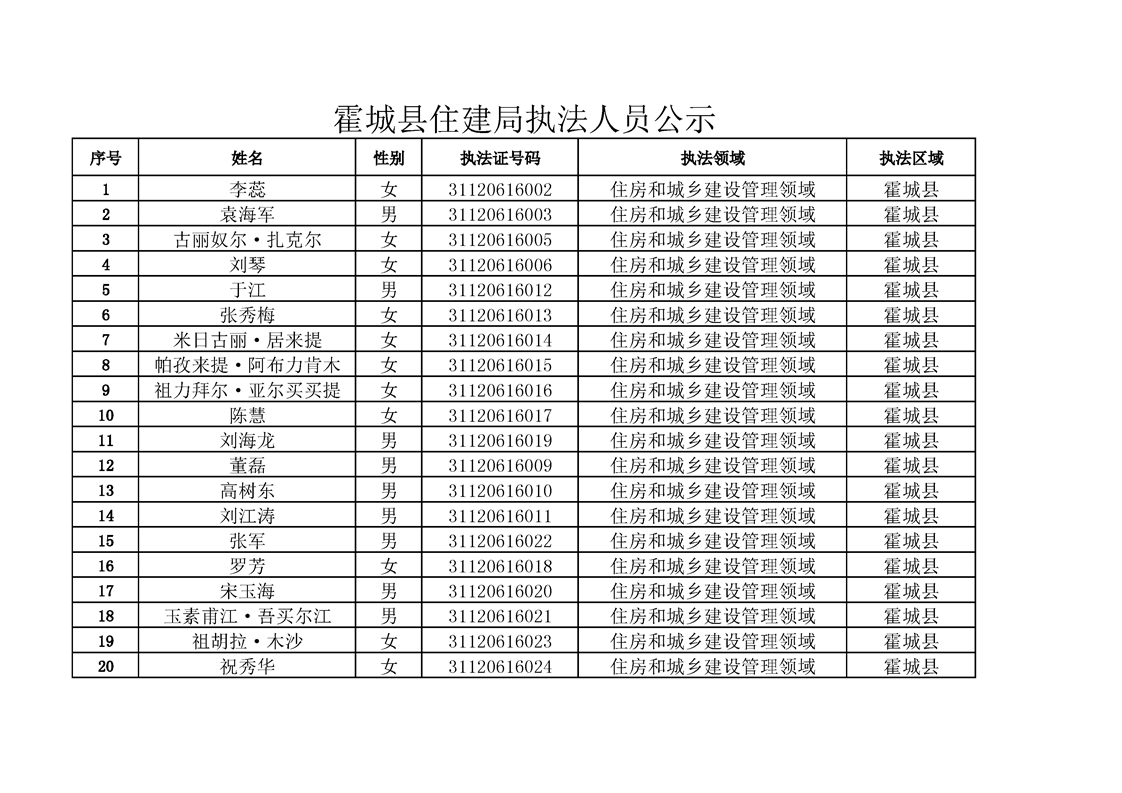 霍城县住建局执法人员公示