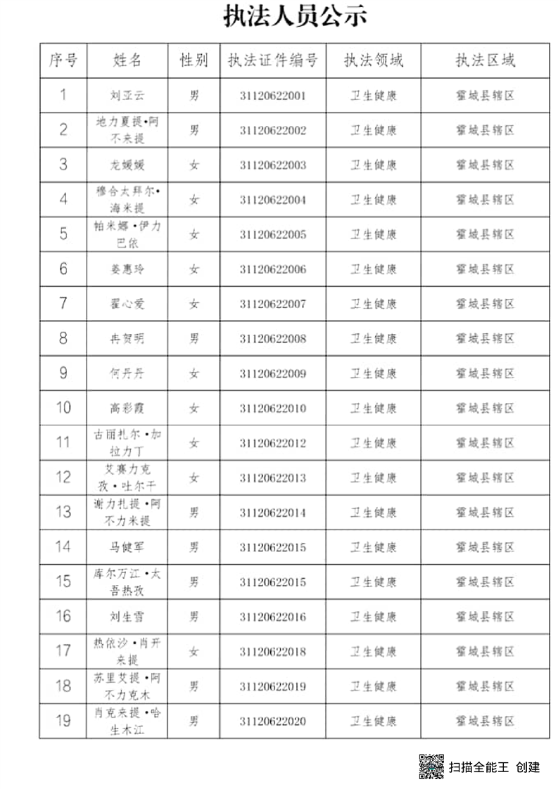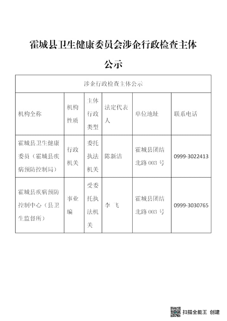 霍城县卫健委行政执法检查主体