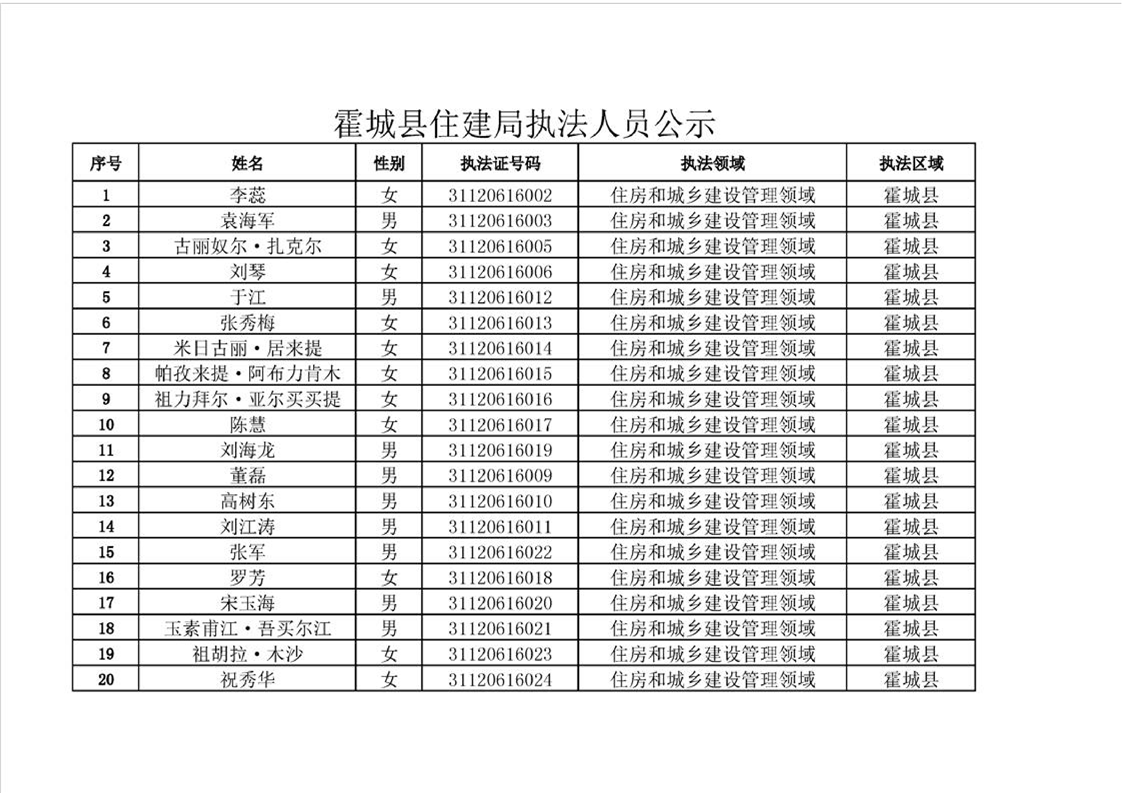 霍城县住建局执法人员公示