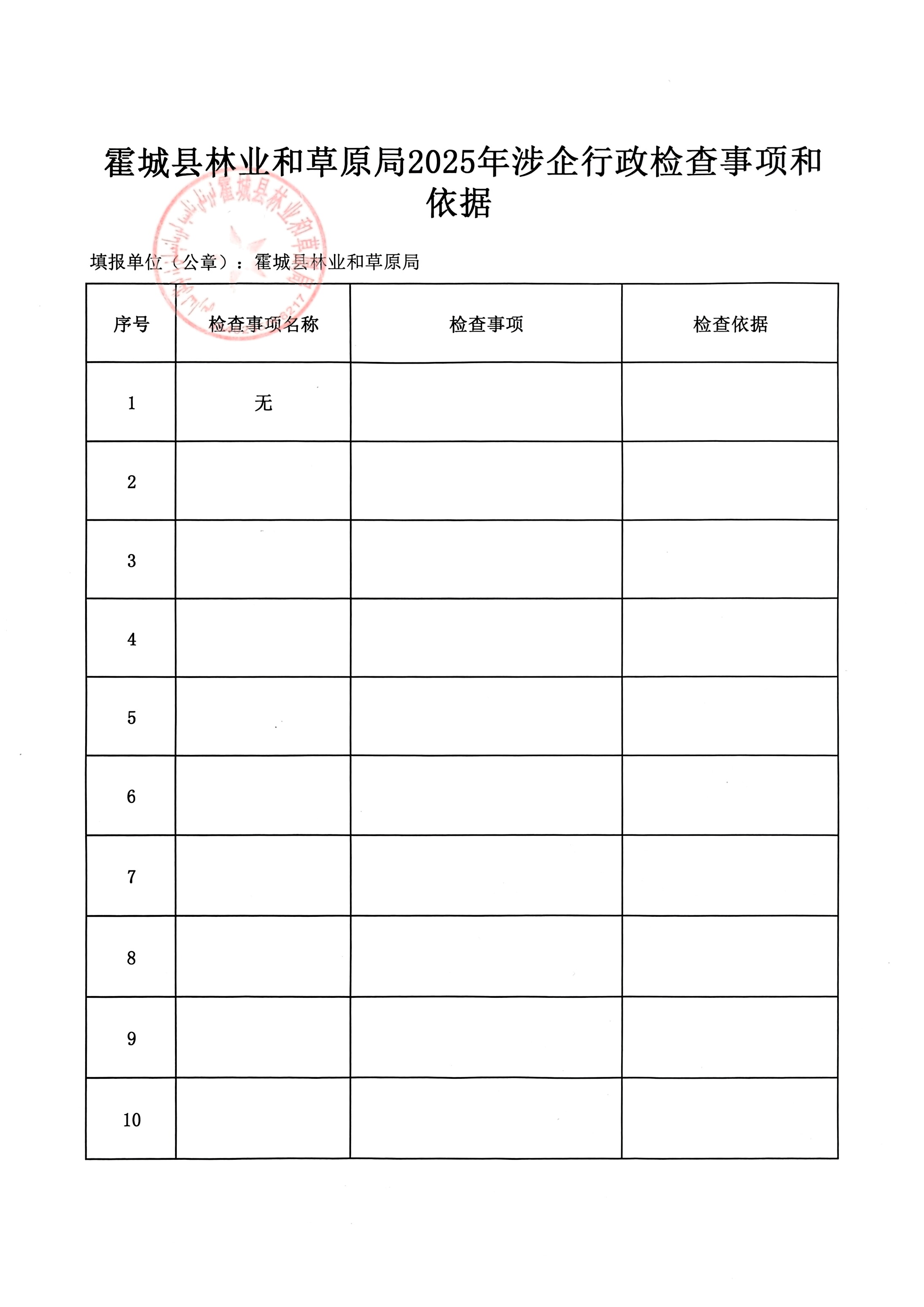 霍城县林业和草原局2025年涉企检查事项和依据.