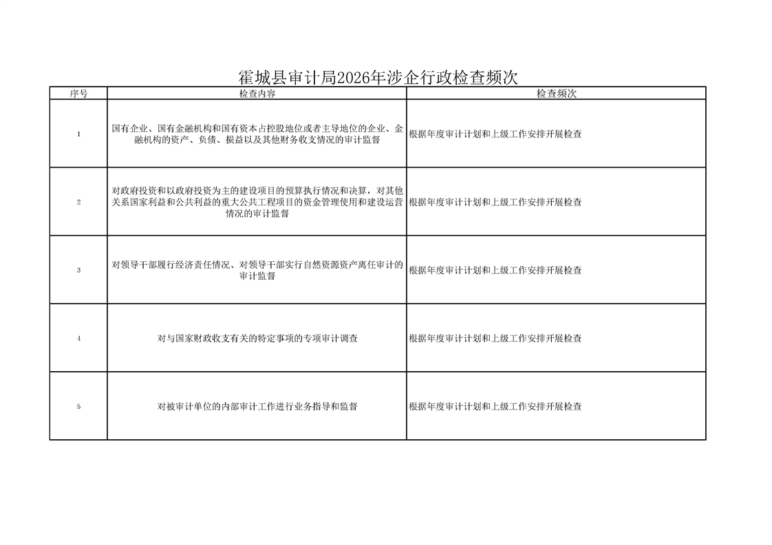 霍城县审计局2026年涉企行政检查频次
