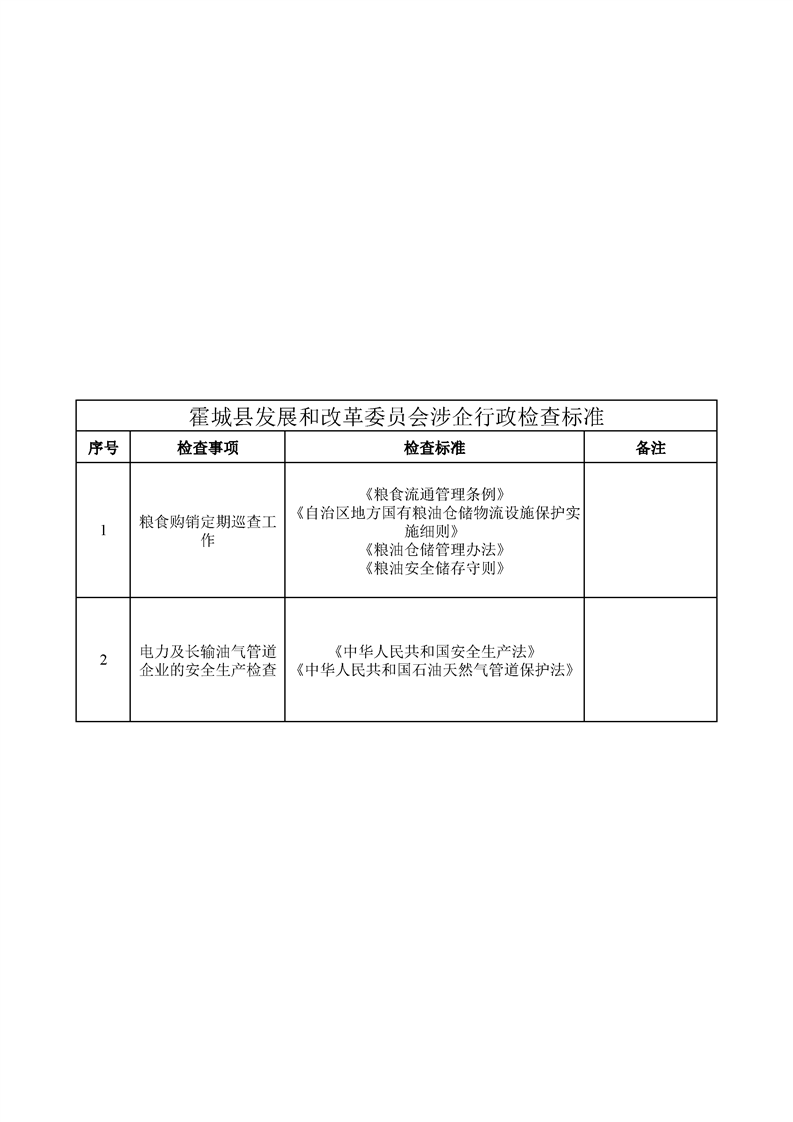霍城县发展和改革委员会涉企行政检查标准