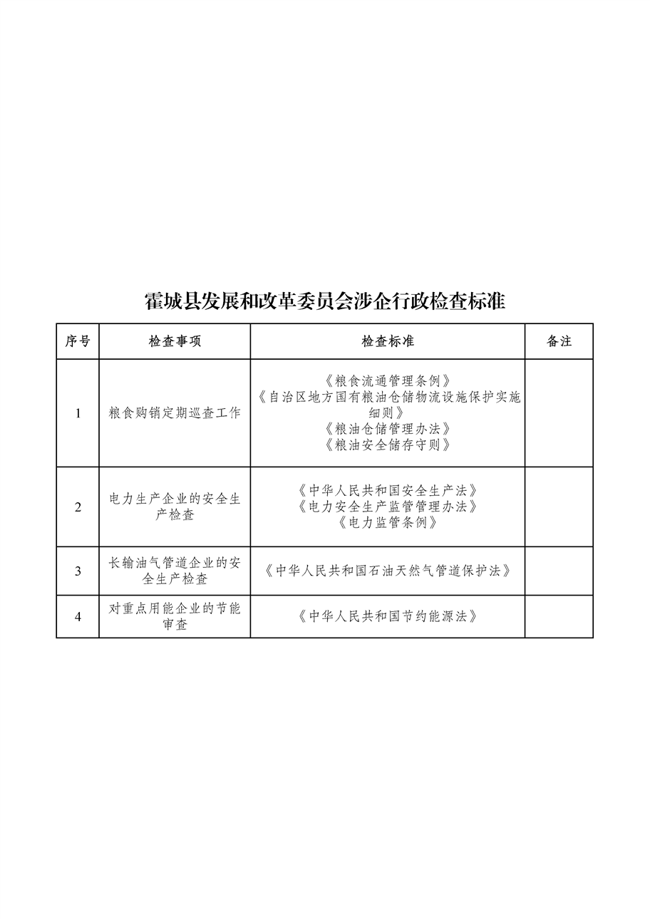 霍城县发展和改革委员会涉企行政检查标准