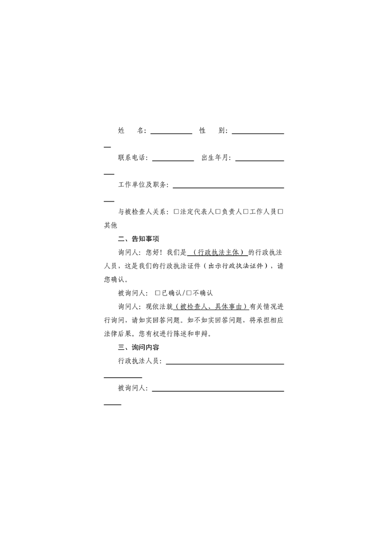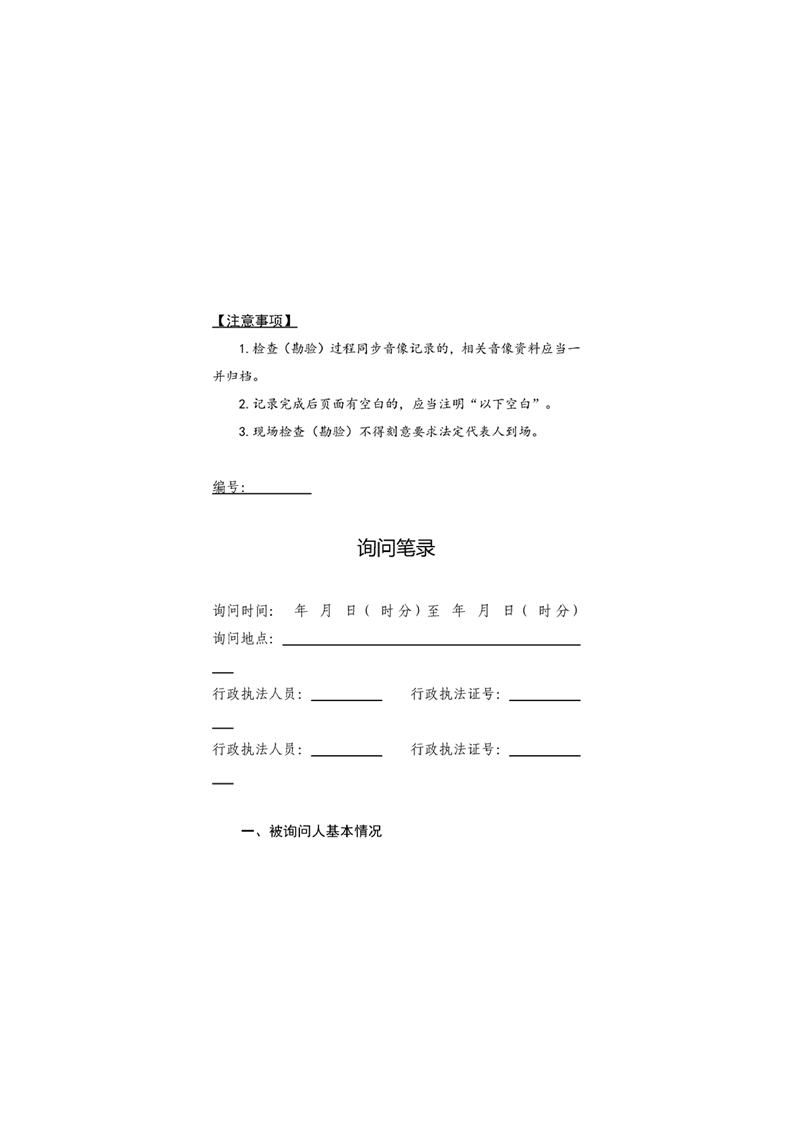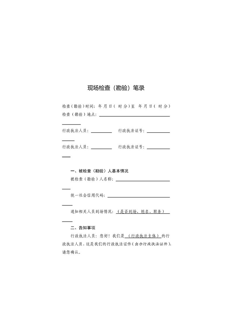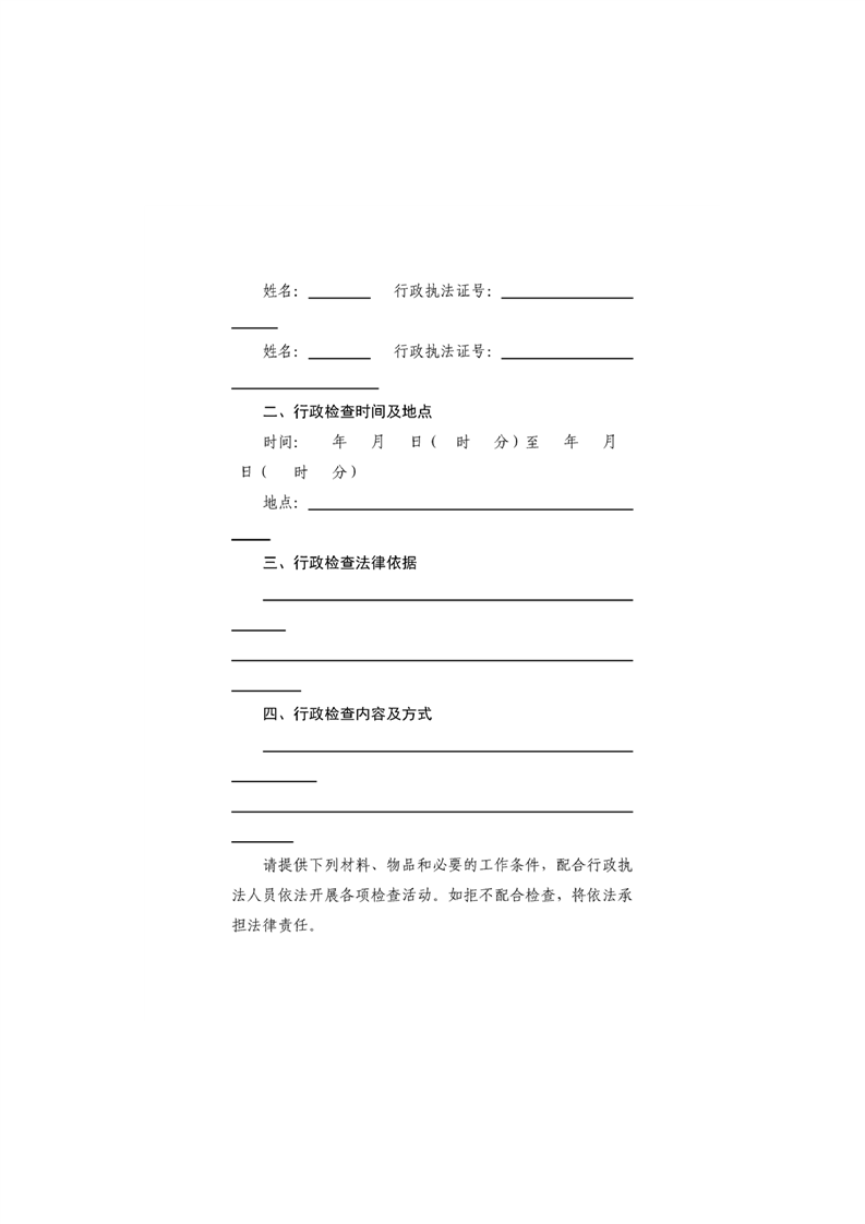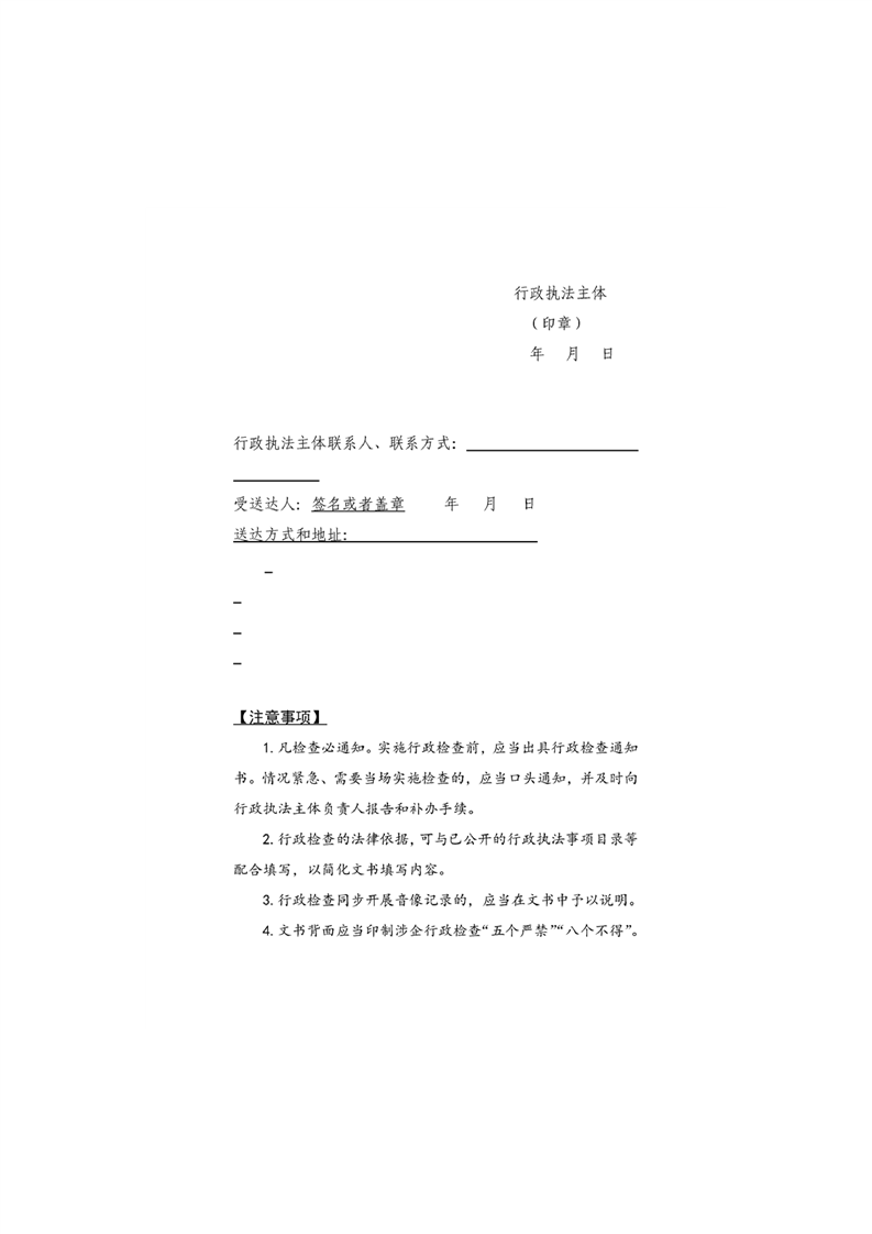 霍城县自然资源局行政检查文书基本格式文本(试行)