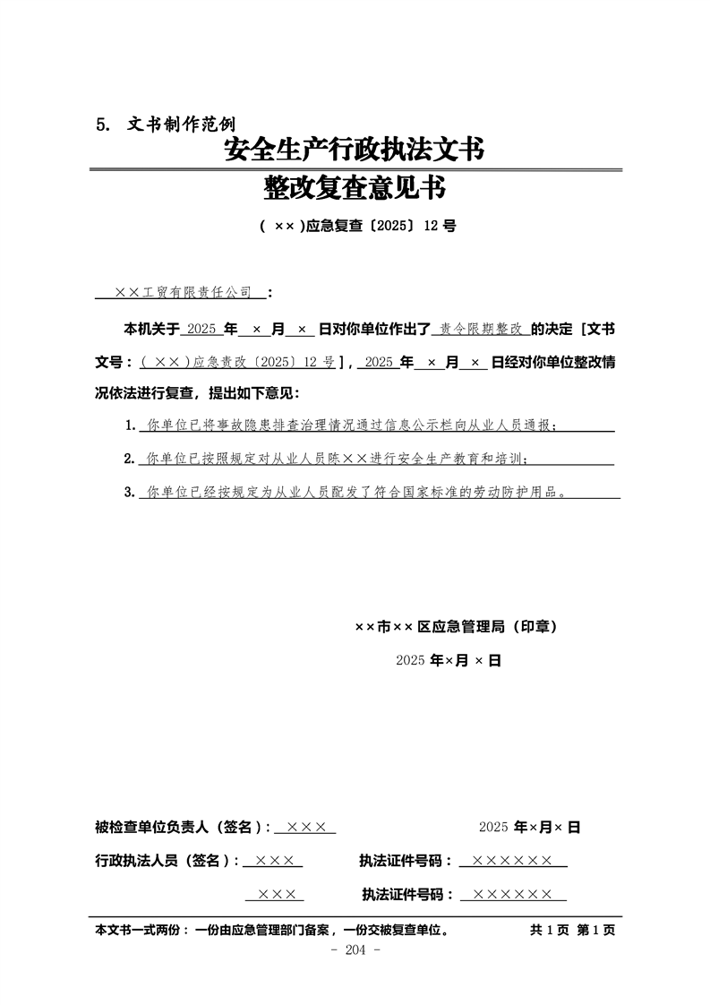 霍城县应急管理局行政执法文书
