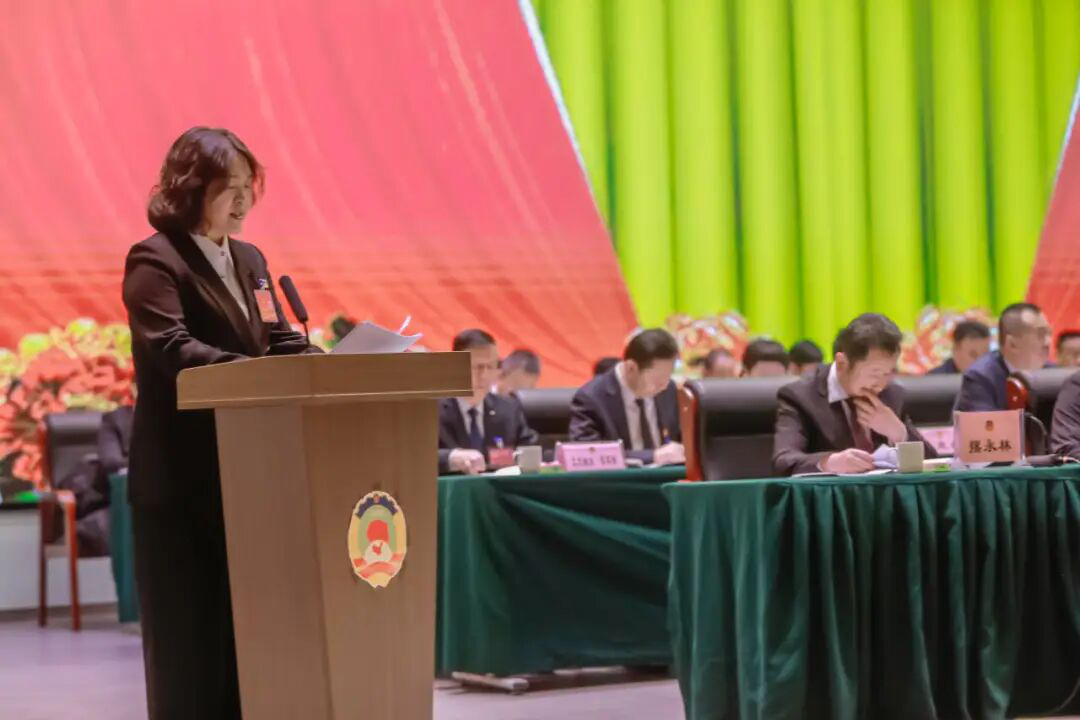 在热烈的掌声中,李雅琴代表县政协十六届常委会向大会报告工作。
