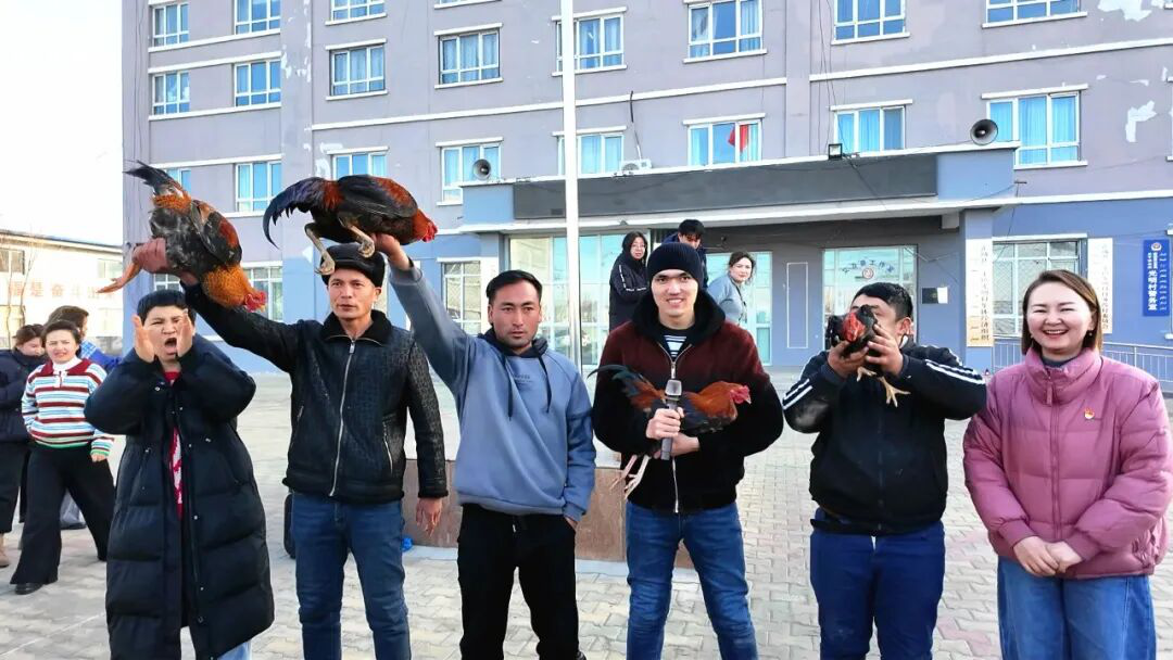 乡野为背景,群众是主角。在霍城县兰干镇文化村和光明村,拔河比赛、抓鸡比赛等接地气的趣味游戏接连上演,邻里乡亲聚在一起,共享欢乐。其中,抓鸡比赛趣味十足,场内土鸡四处跑动,参赛村民全力追赶,现场充满欢乐。