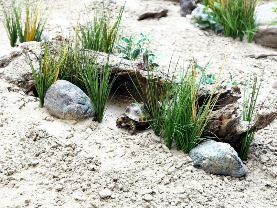 四爪陆龟是国家一级保护动物,被《中国濒危动物红皮书》列为“极危”等级,在我国仅分布于霍城县境内部分山区。此次研学活动以“科普+实践”形式,打破课堂局限,让学生在沉浸式体验中系统学习四爪陆龟的物种知识与保护举措,真正实现“学在途中、悟在当下”。在四爪陆龟科普馆内,讲解员用生动形象的语言、通俗易懂的案例,详细讲解了四爪陆龟的外形特征、生活习性、繁殖方式以及濒危原因,结合图文资料和多媒体演示,让抽象的科普知识变得直观可感。孩子们听得认真、记得仔细,与讲解员积极互动,深刻理解了物种保护的紧迫性。在四爪陆龟国家级自然保护区管护站内,同学们近距离了解四爪陆龟的自然栖息环境,学习保护区日常管护等相关工作流程,真切感受到一线工作人员的坚守与付出。
