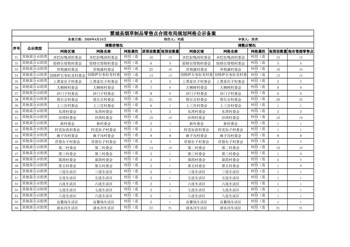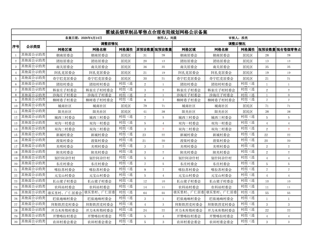 霍城县烟草制品零售点合理布局规划网格公示备案