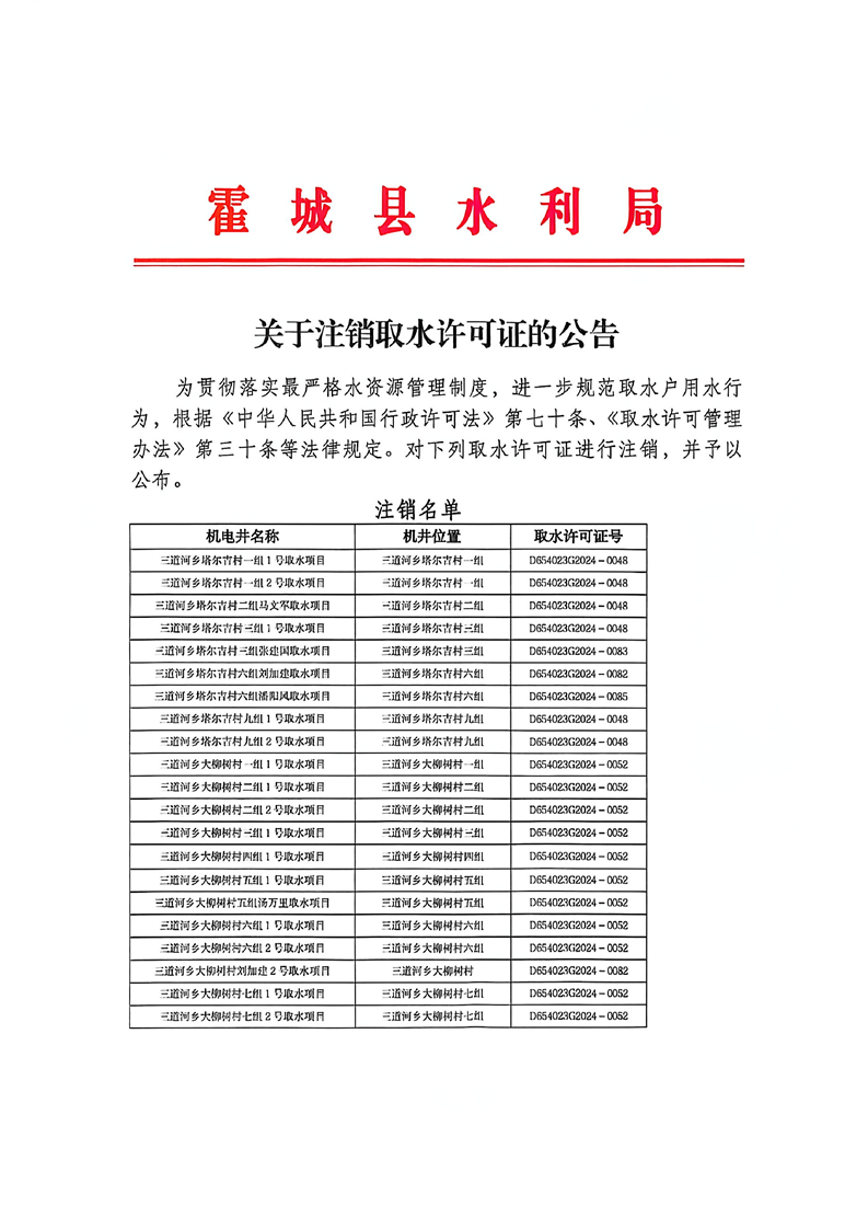 关于注销农业灌溉井的公告