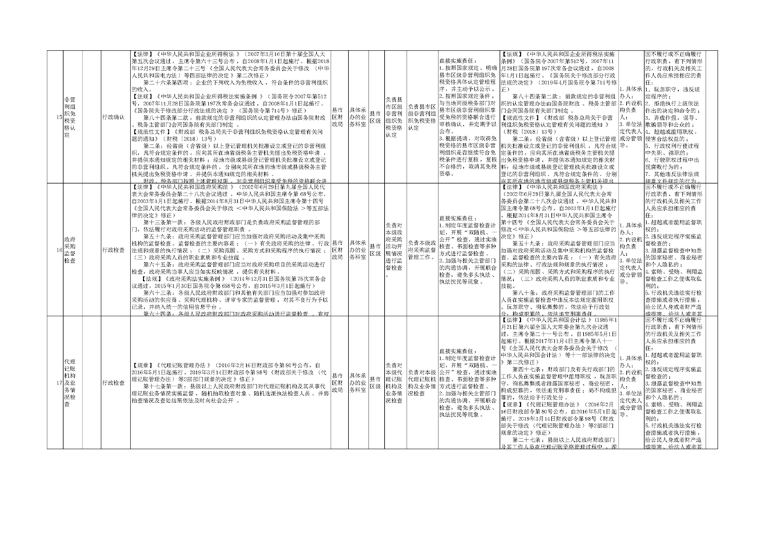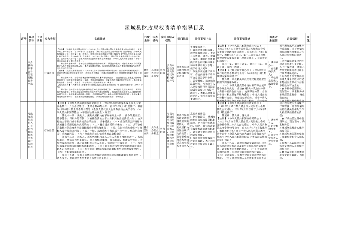 霍城县财政局权责清单指导目录