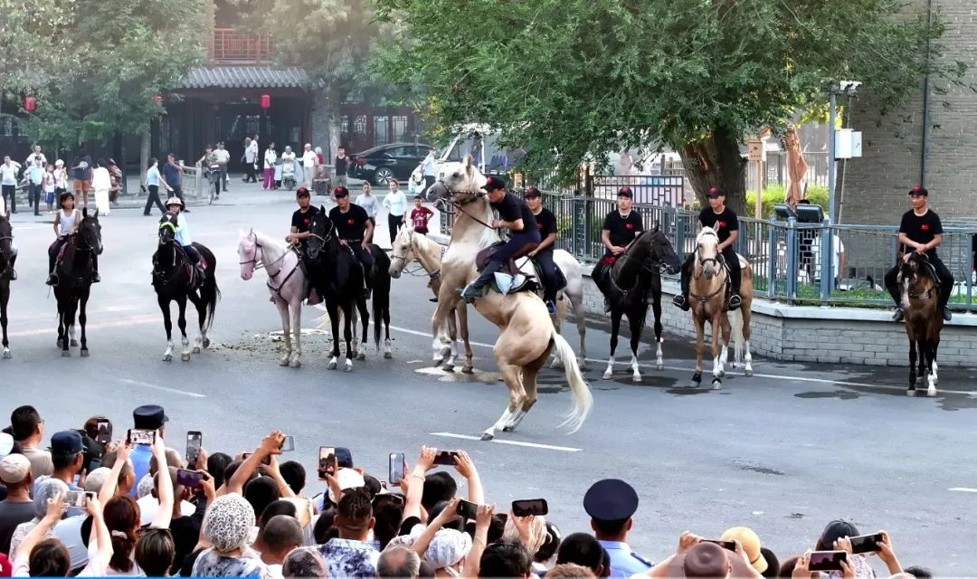 7月19日,霍城县惠远古城旌旗招展、鼓乐喧天,2025“古城跃马·丝路狂欢”民俗文化嘉年华活动在这里盛大启幕。汗血宝马方队、机车方队、社火方队、将军方队、骆驼方队在惠远古城巡游,为现场观众呈现了一场穿越千年的文化盛宴,生动诠释了丝绸之路的古今交响深厚情谊。惠远古城道路两侧人头攒动,众多观众与巡游队伍合影留念,热闹景象贯穿传承。人群中不时响起惊叹声,游客纷纷举起相机、手机,争相记录这难得一见的精彩瞬间。