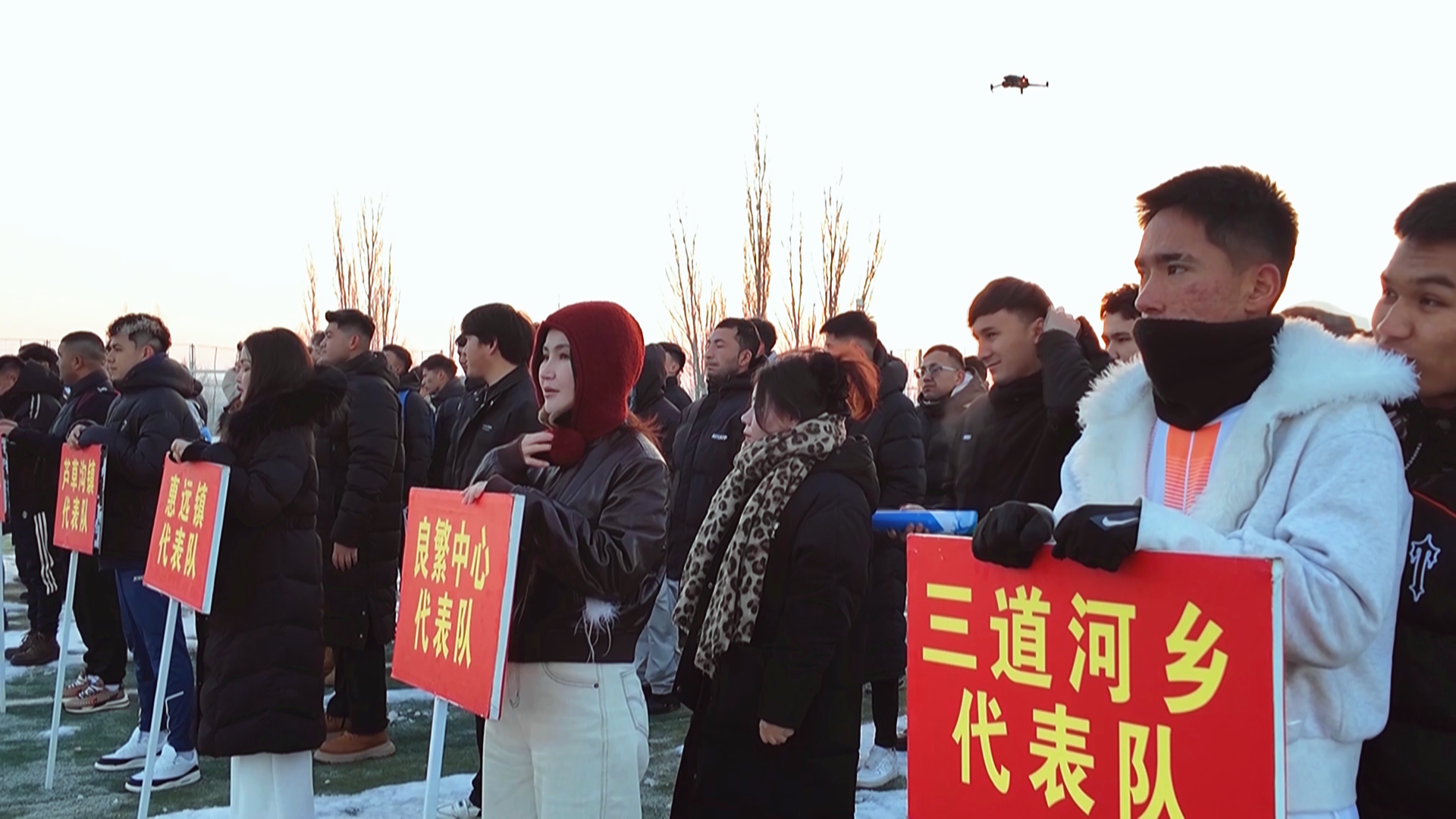 1月6日,群众村晚系列文体活动-霍城县2026年“体彩杯”十一人制雪地足球赛在兰干镇茹先巴克村足球场激情开幕。副县长马霞参加开幕式。